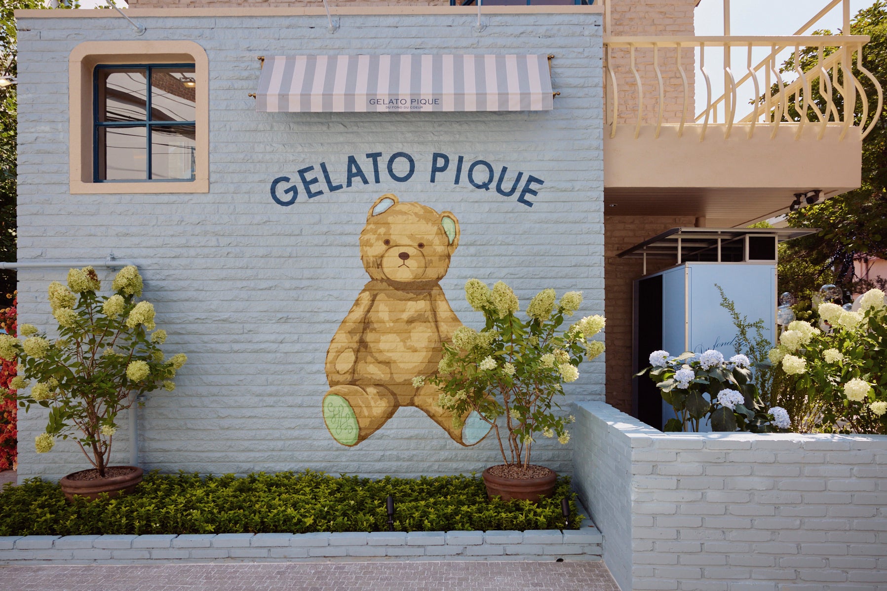 ジェラート ピケのシグネチャーカラーで彩られ、大きなベアが描かれた外観は、グランドオープン前から目を引き、写真を撮る人が続出し、最新注目のスポットとなっている。