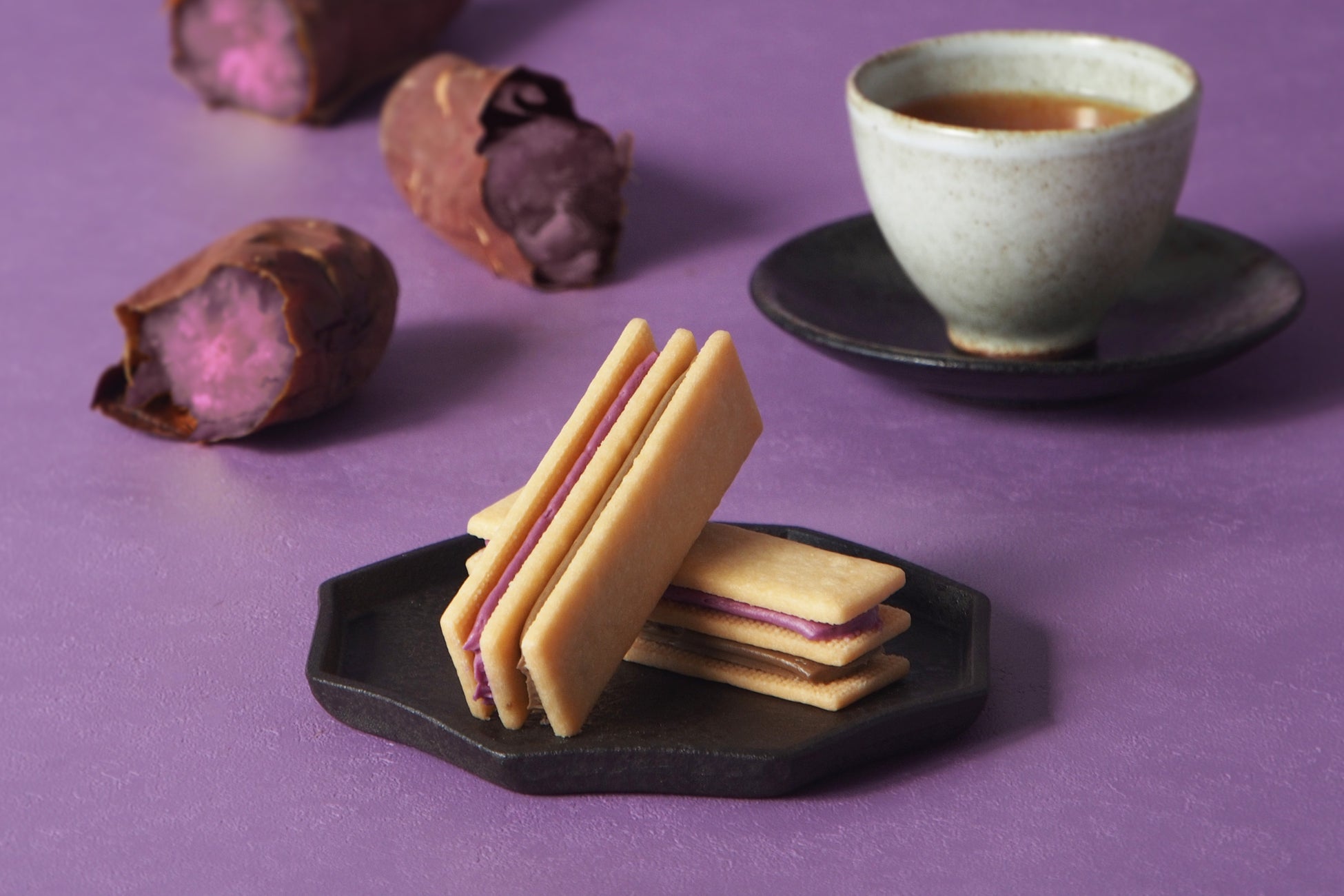 紅芋の上品な自然の甘さを、ほうじ茶の香ばしさと渋みが引き立てる奥深い味わいのバターサンド。数量限定商品です。