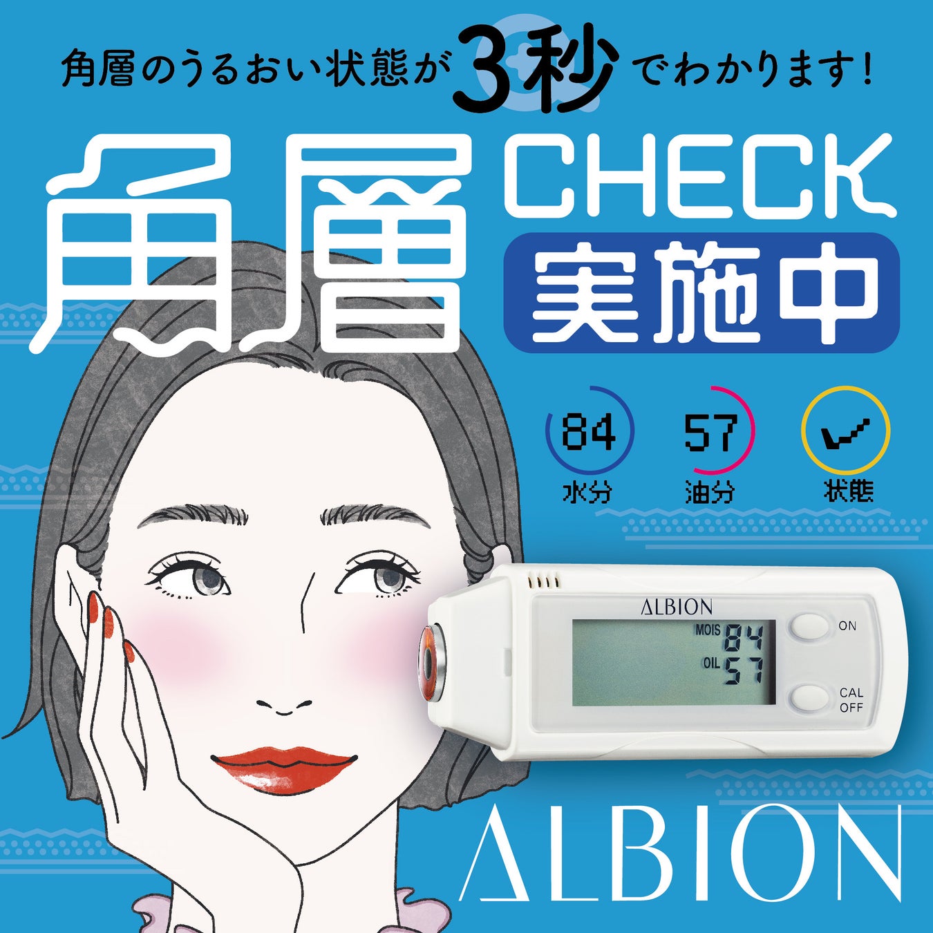 角層の水分と油分をアルビオン独自の美容機器で数値化。お客様のお肌にあった最適なうるおいケアをご提案致します。春のゆらぎやすいお肌のトラブルには、実は角層ケアが大事なキーワード。