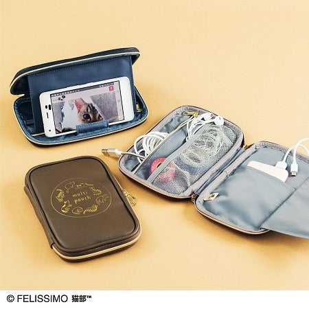 スマホスタンドにもなる ゆる猫マルチポーチの会