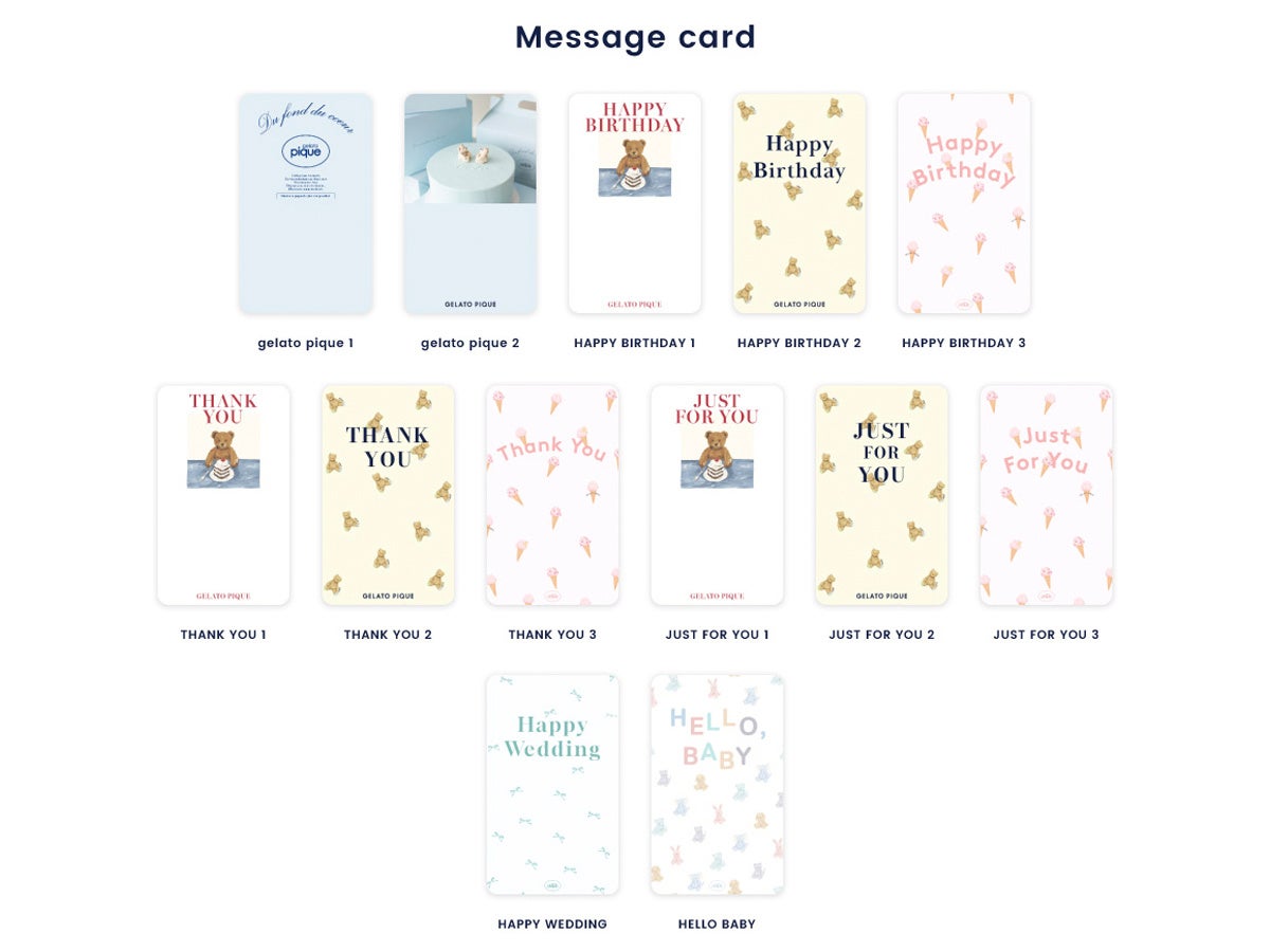 ジェラート ピケオリジナルのデジタルメッセージカードをお選びいただけます。