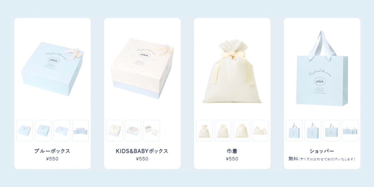ジェラート ピケオリジナルのギフトボックスまたはギフト巾着でラッピングいたします。