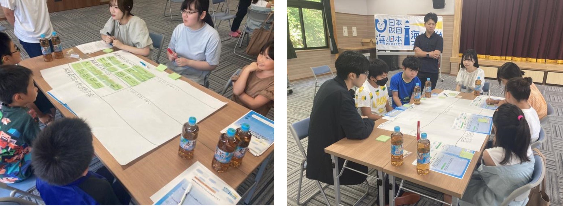 子どもたちだけではどう考えていいかがわからないところを、年が近い大人=大学生のアドバイスをもらいながら、東通村の未来を担う子どもたちの意見をまとめました。