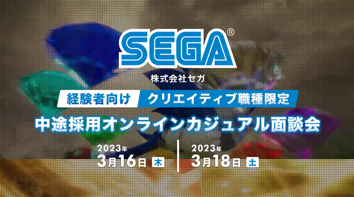 【ゲームクリエイター向け】エンジニアやTA、デザイナーなど、積極採用中!3/16(木)・18(土)㈱セガ 中途採用オンラインカジュアル面談会