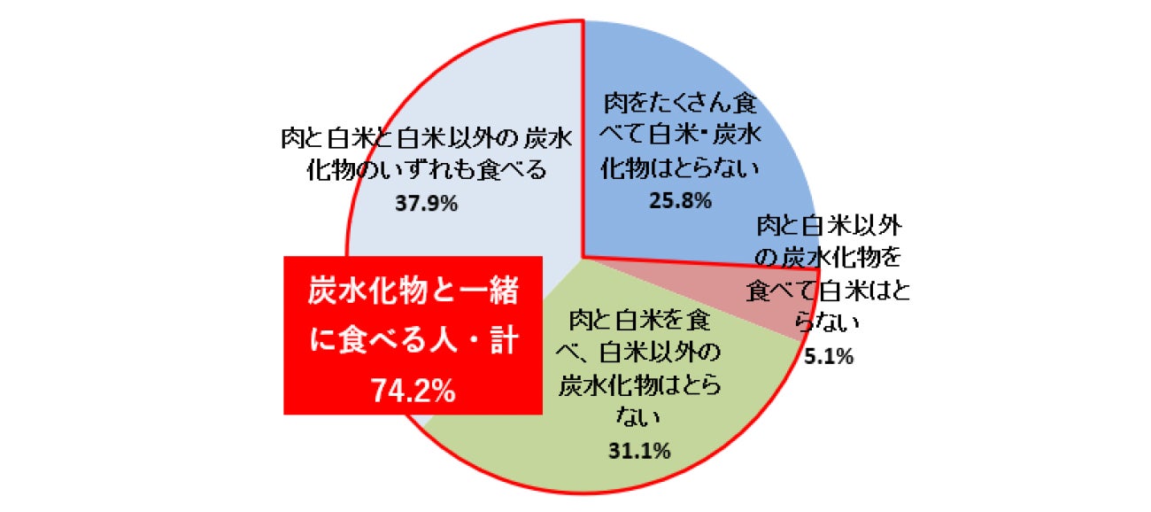 ■「肉と一緒に炭水化物を食べる人」は7割超