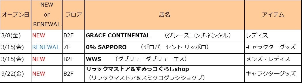 札幌PARCO 2024年春 NEW&RENEWAL OPEN!