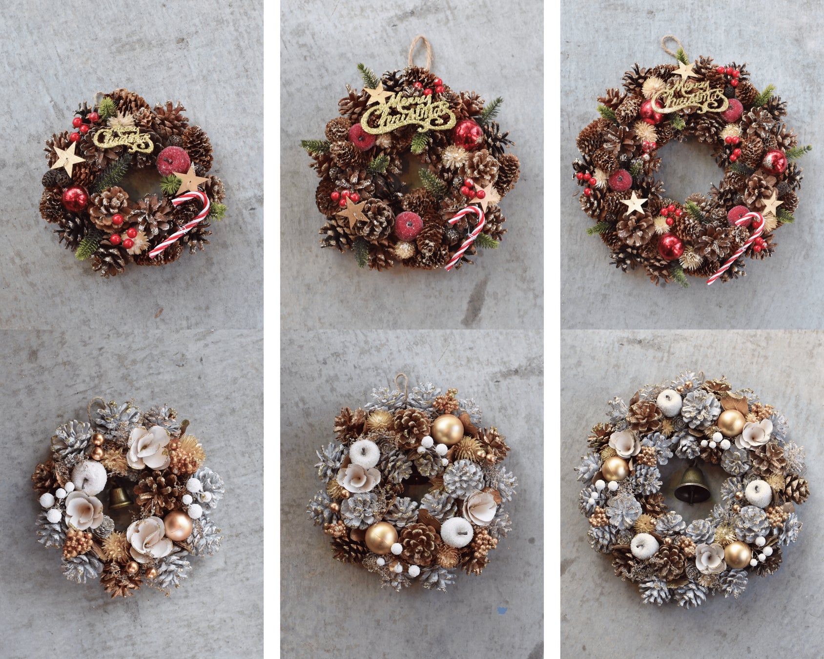 星やキャンディケーンのパーツが付いた「メリクリリース」は華やかなクリスマス感を演出。落ち着いた印象の「ホワイトベル」は、ベルがアクセントになっています。