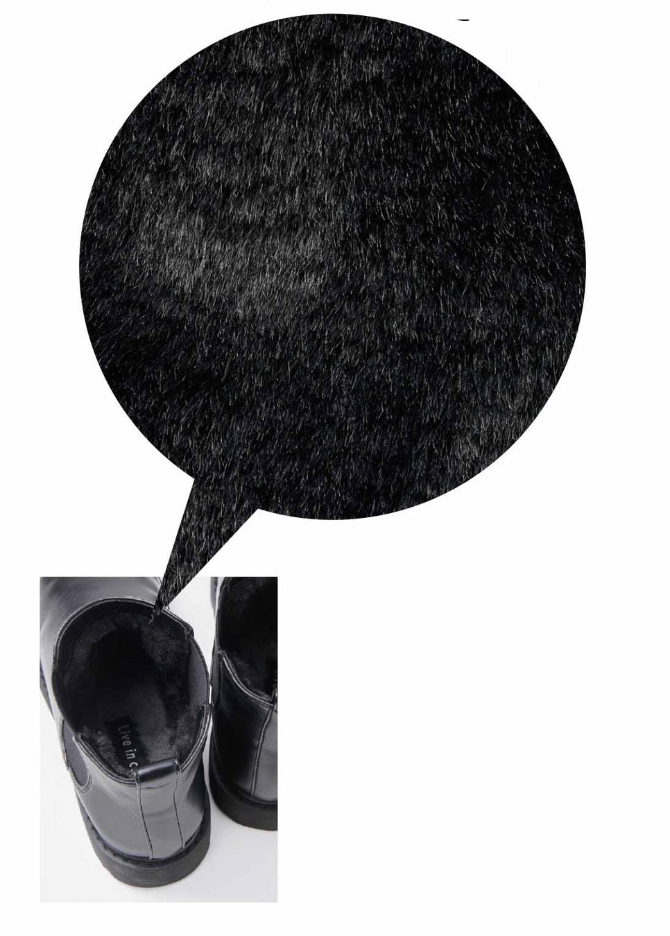 コーデのバランスがとりやすい重厚感のあるシルエットのブーツです。素材は本革見えするフェイクレザーで、大人かっこよく履くことができます。内側はエコファーがみっしりなのに、見た目がすっきりしているので、きれいめコーデもお手のものです。すぽんと履けて自転車でのお買い物や公園にも、毎日ぽかぽかお出かけできます。