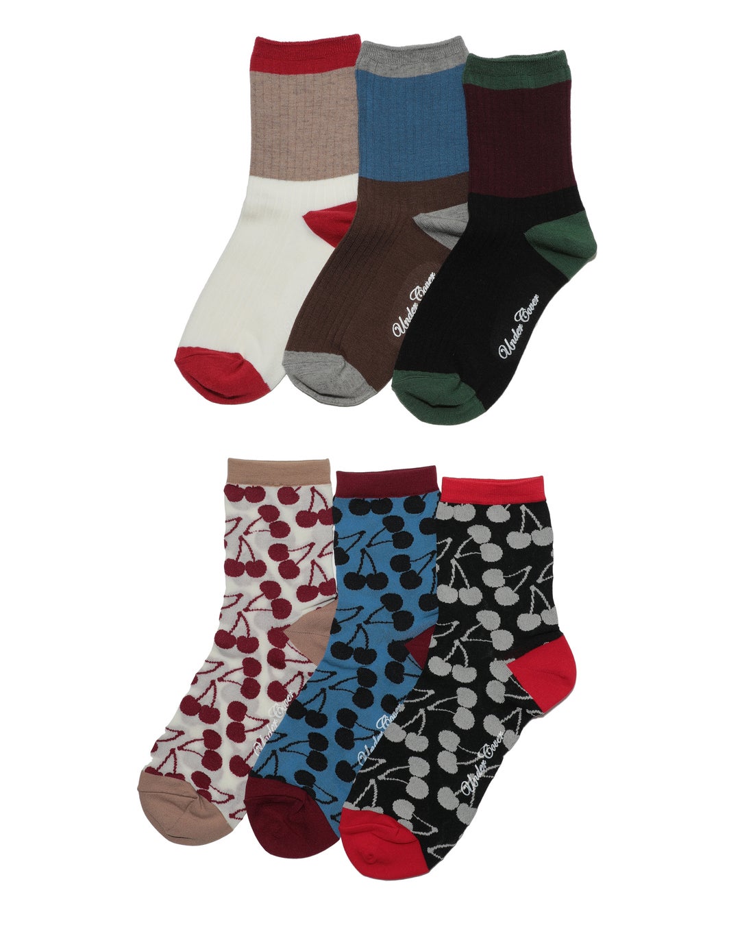 〈ソックス〉総柄 Cherry 各3,300円/配色リブ 各3,080円