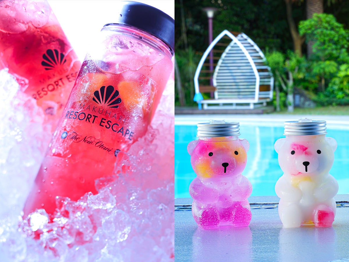 さらに、ホテルオリジナルボトル入り「ピンクフルーツフィズ」や、くまボトルに入ったゼリー入りオリジナルドリンク「ももくま」「白くま」「クリスタルくま」が新登場!デイプールとのコントラストも美しいメニューの数々が、滞在の思い出に華を添えます。