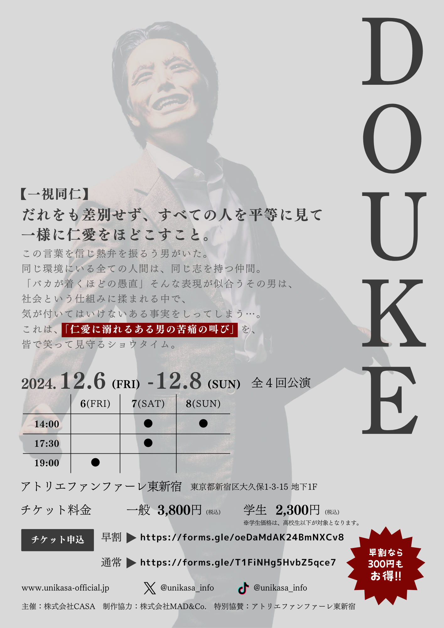 ユニ傘 舞台『DOUKE —仁愛に溺れるある男の苦悩の叫び—』