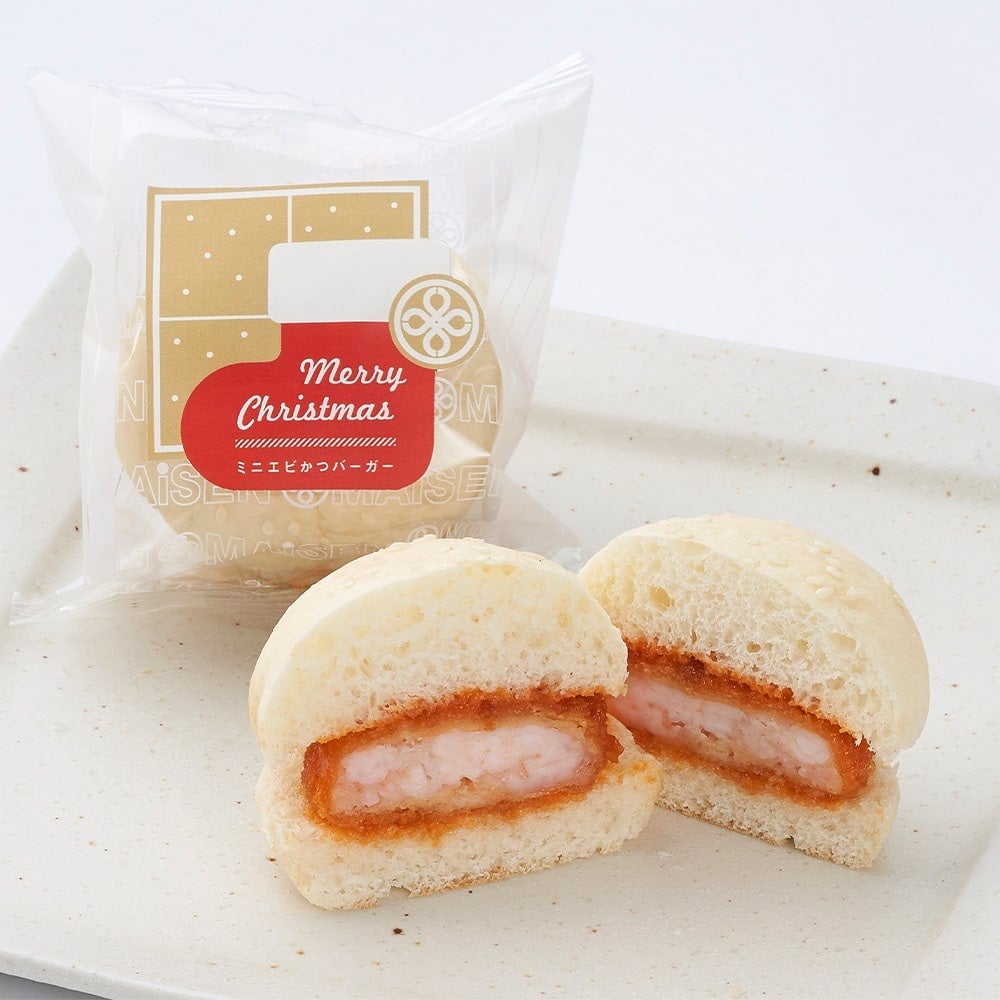 定番のミニエビかつバーガーをクリスマス限定パッケージで。ホワイトバンズではさんだ期間限定のアレンジをお楽しみください。