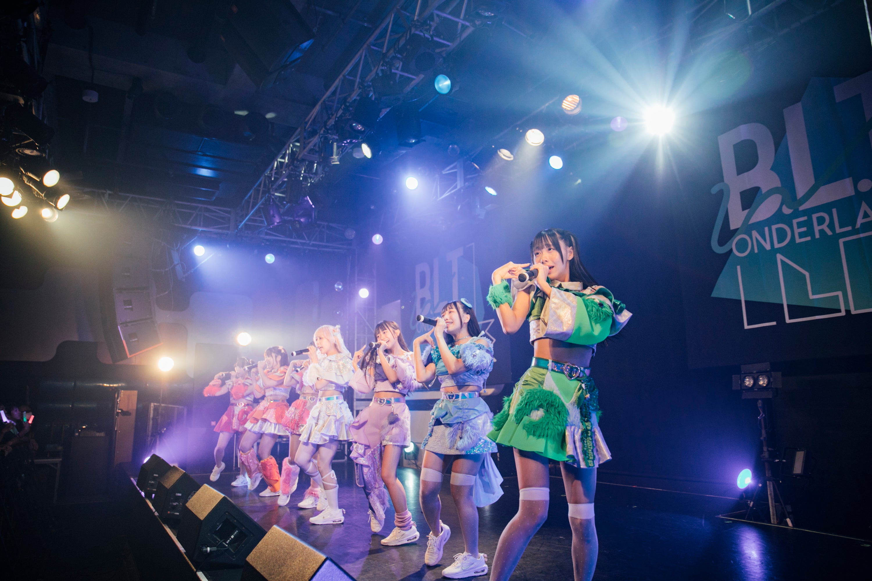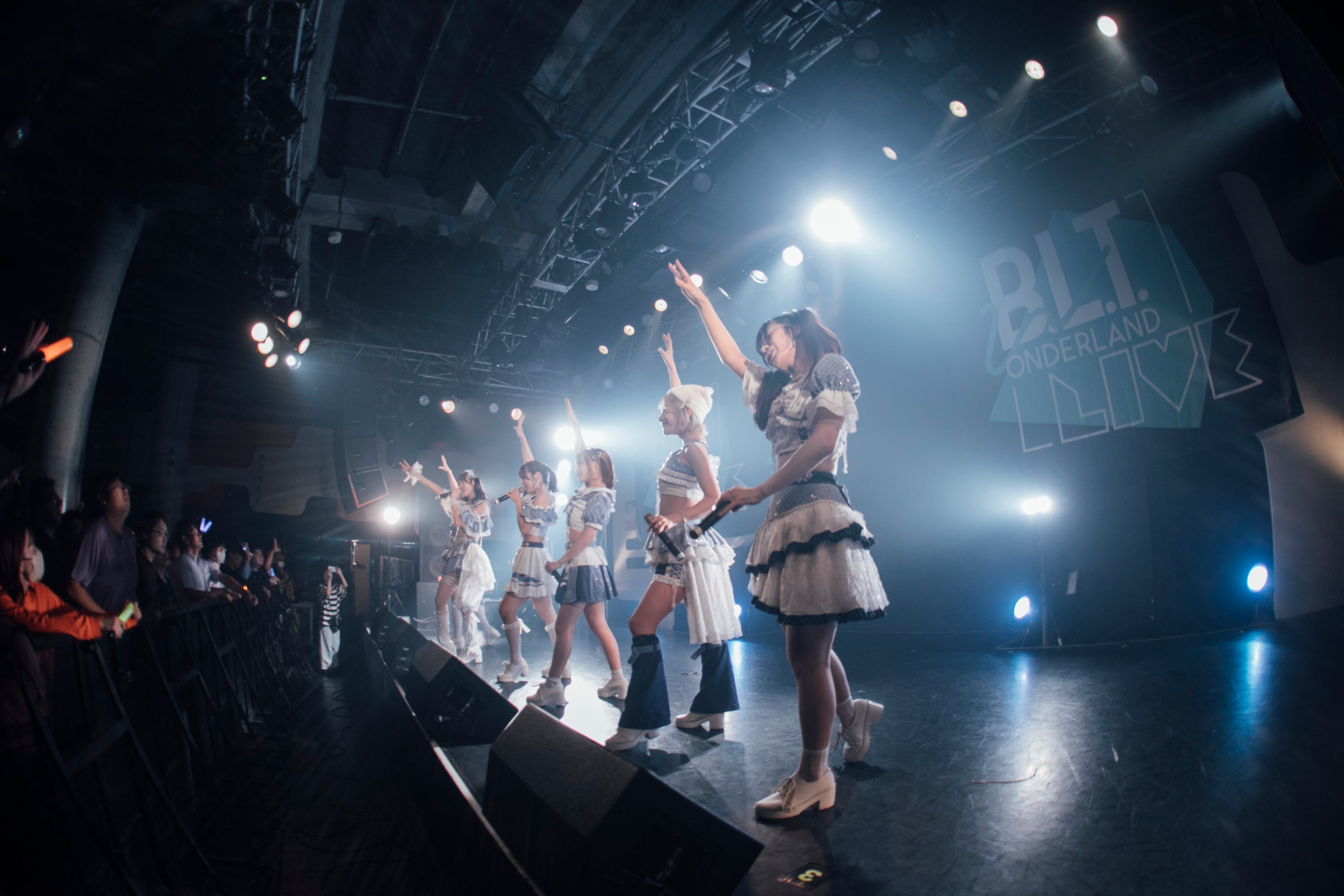 最後は、昨年武道館での単独公演を行い、今年もアイドルフェスなどで夏のイベントを盛り上げたクマリデパート。おなじみのSE曲「おいでよ!クマリデパート」で登場し、軽快なアンセム「ブルーサバイバー」、甘酸っぱいディスコナンバー「いまさらだけど、恋しませんか?」で歌声を届ける。クマリデパート独特のサウンドと可愛らしいダンスでトリにふさわしいステージを魅せる7人。5曲を披露したのち、夏の終わりにふさわしいエモーショナルな楽曲「サクラになっちゃうよ!」で会場に余韻を残しながらも、今回の「B.L.T. W LIVE + vol.2」の幕を閉じた。
