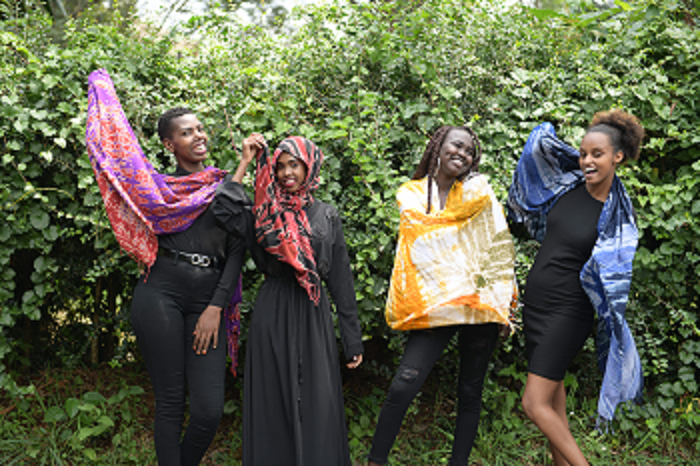 今回のポップアップショップでは、RefuSHEで支援を受けている若い女性たちが手染めで製作した、一つひとつ模様や色合いが異なる、一点もののタイダイ染めストール&バッグを紹介します。