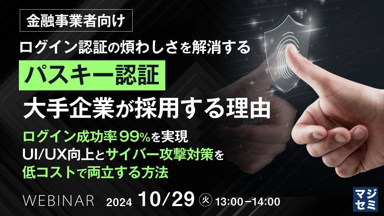 マジセミ株式会社は「【金融事業者向け】ログイン認証の煩わしさを解消する「パスキー認証」 大手企業が採用する理由」というテーマのウェビナーを開催します。