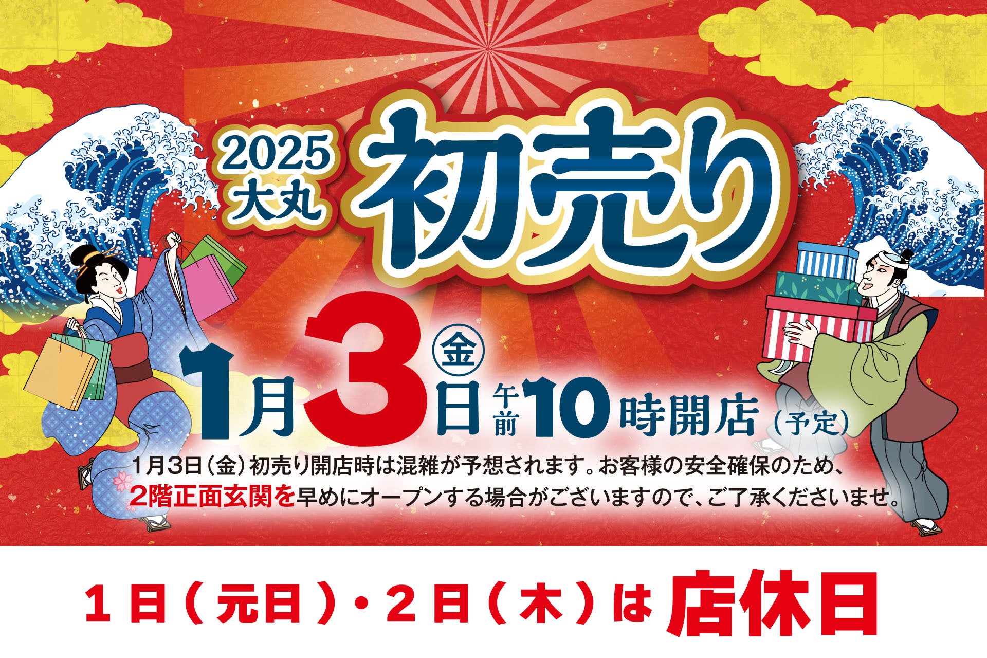 1月3日(金)初売り開店時は混雑が予想されます。お客様の安全確保のため、2階正面玄関を早めにオープンする場合がございますのでご了承くださいませ。