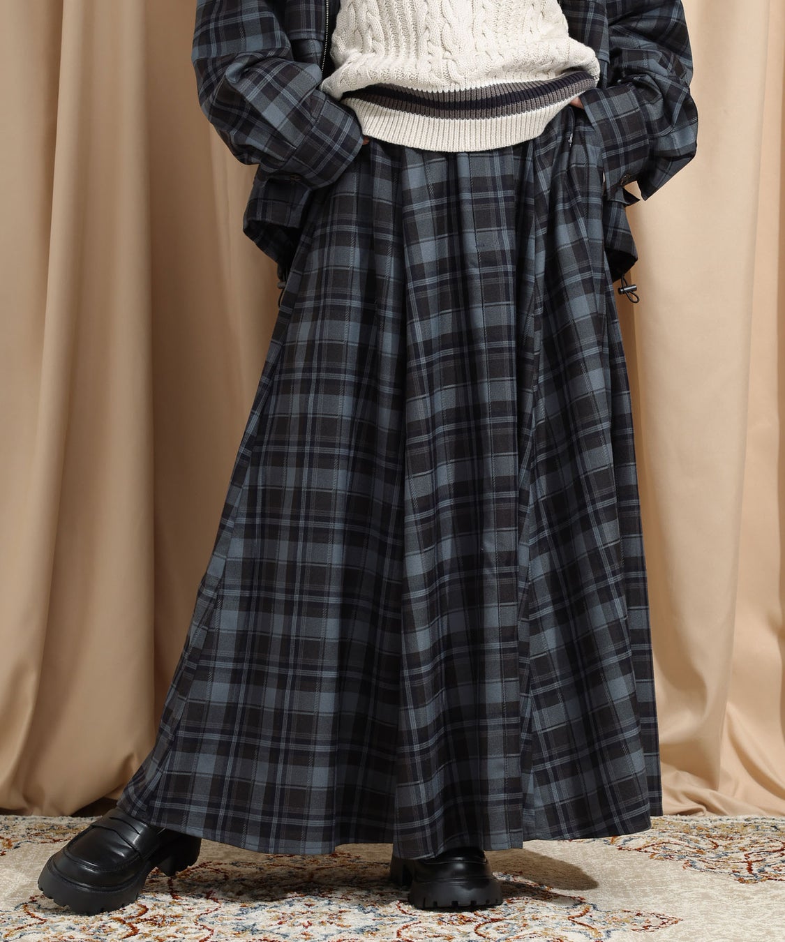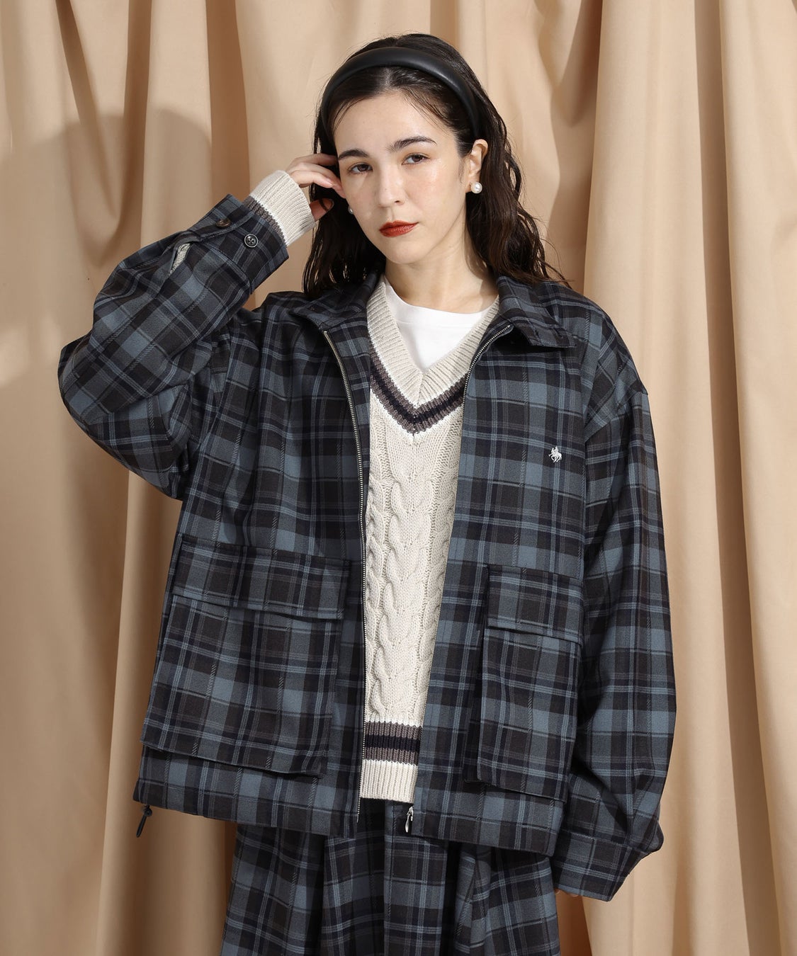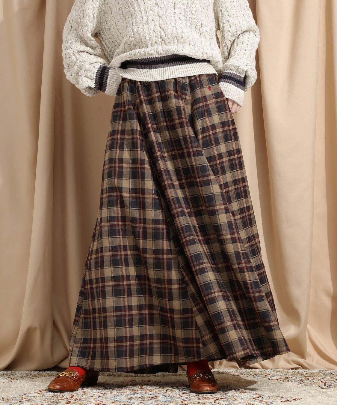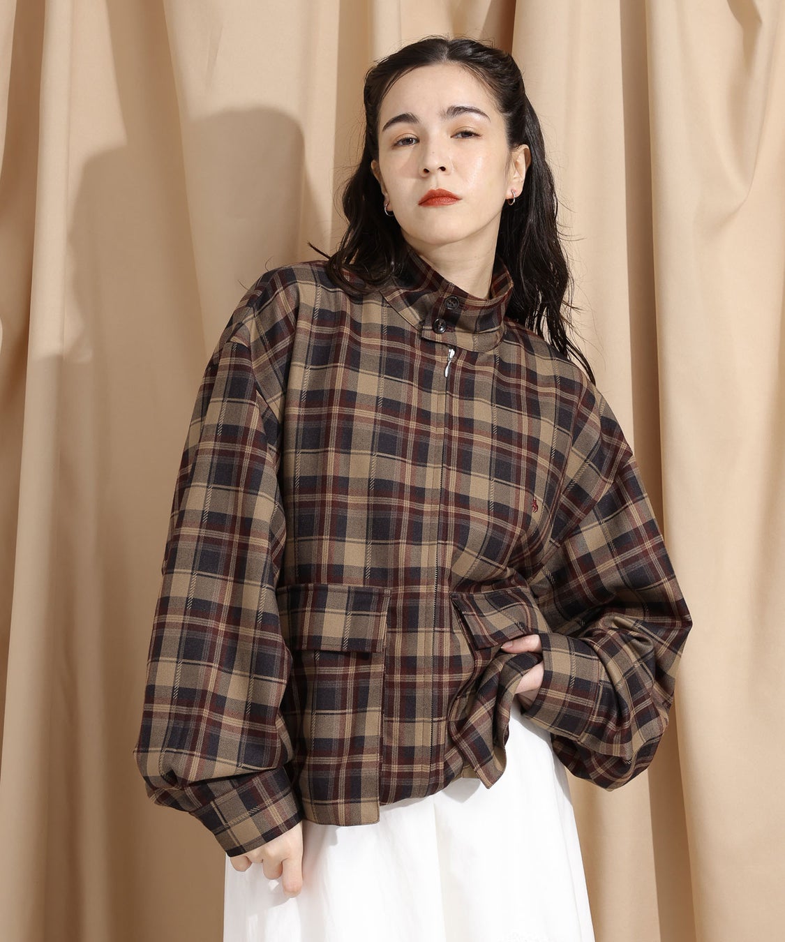 カラー展開:ブラウン(無地)、ボルドー(チェック)、ネイビー(チェック)