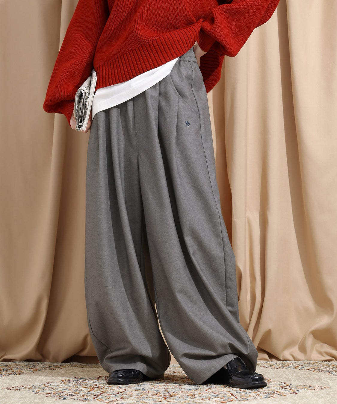 春に好評だったクリケットセーター(チルデンニット)や、セットアップアイテムに秋らしい色柄を加えてブラッシュアップ。その他、トレンドのコクーンシルエットパンツや、トラッドな刺繍スウェットなど、アイテム数を増やし、コラボアイテム同士で無数にコーディネートを楽しめる充実のラインアップです。今回の別注商品も、「RAGEBLUE」でしか手に入らない完全オリジナルの限定アイテムです。