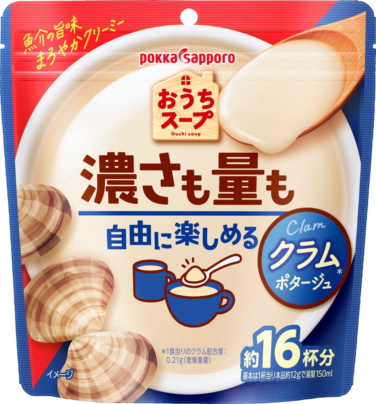 商品特長:定番のクラム*スープがたっぷり約16杯分楽しめる大容量タイプです。チャック付き袋入りで、好きな量・濃さでアレンジも楽しめます。魚介の旨味とクリーミーな味わいを楽しめます。紙箱や個包装をなくした環境にやさしい簡易包装。