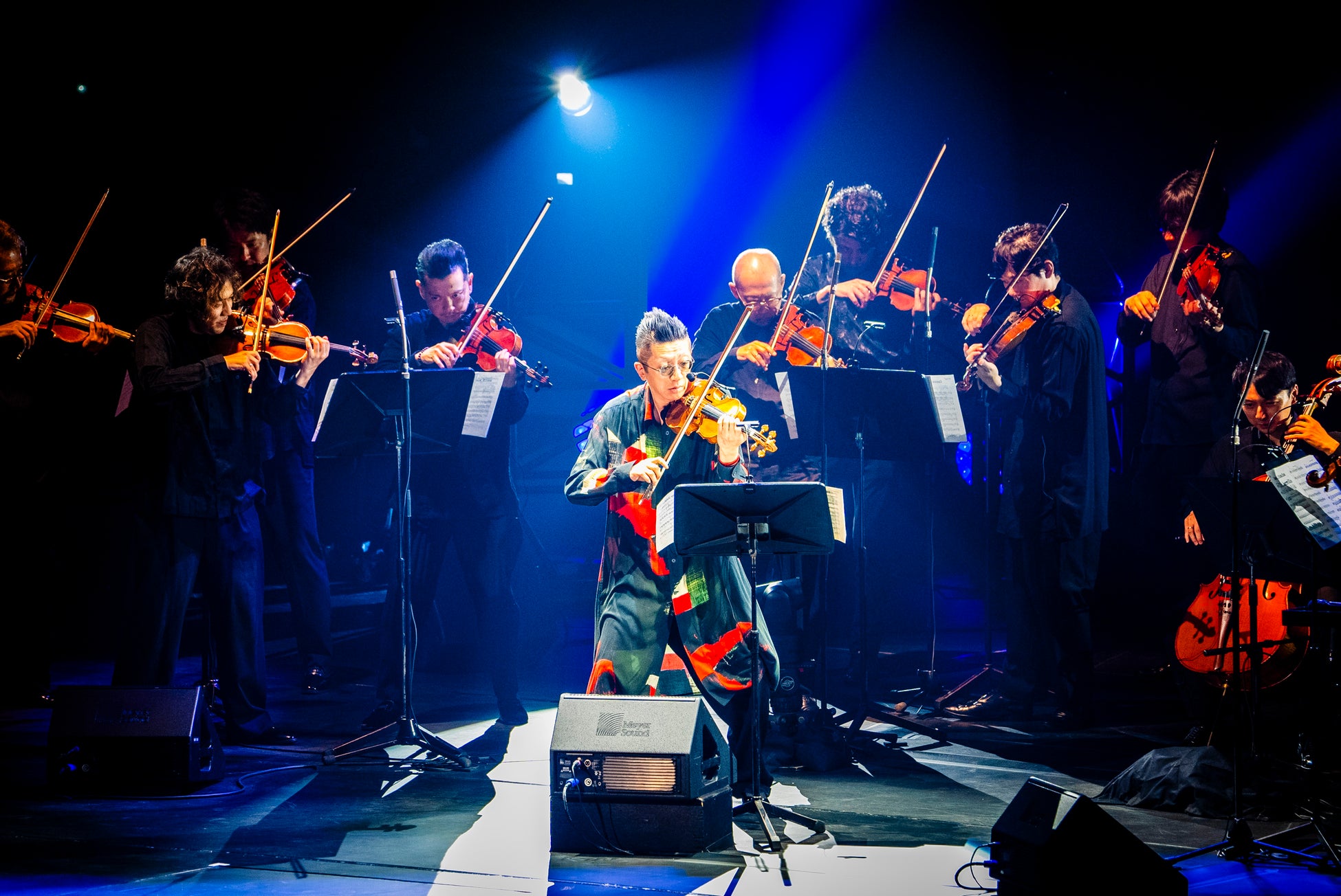 遅まきながら、このクラシックパートを聴きながら今日のコンサートの最大の拘りであろう、音響のセッティングに気付く。メンバー全員の楽器にピックアップマイクが付けられ、広大な空間に合わせて石田組の演奏がしっかりと再構築されている。音響スタッフの緻密なオペレートにより、弦楽器のナチュラルさを保ちつつ、弓が弦を擦る音、スタッカートにピツィカート、更に石田の呼吸やカウントの声も臨場感を以って届けられていた。