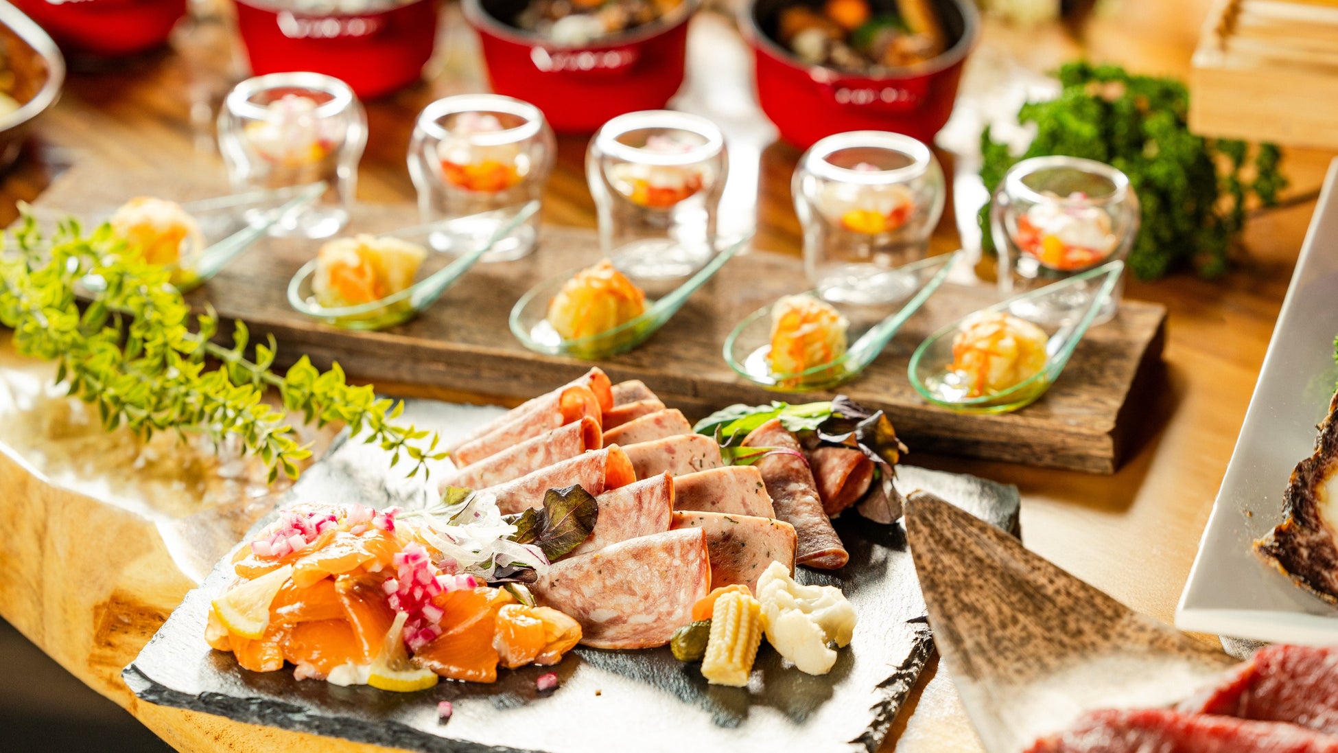 チョークアートに囲まれた空間で贅沢なメニューを堪能するディナーブッフェ