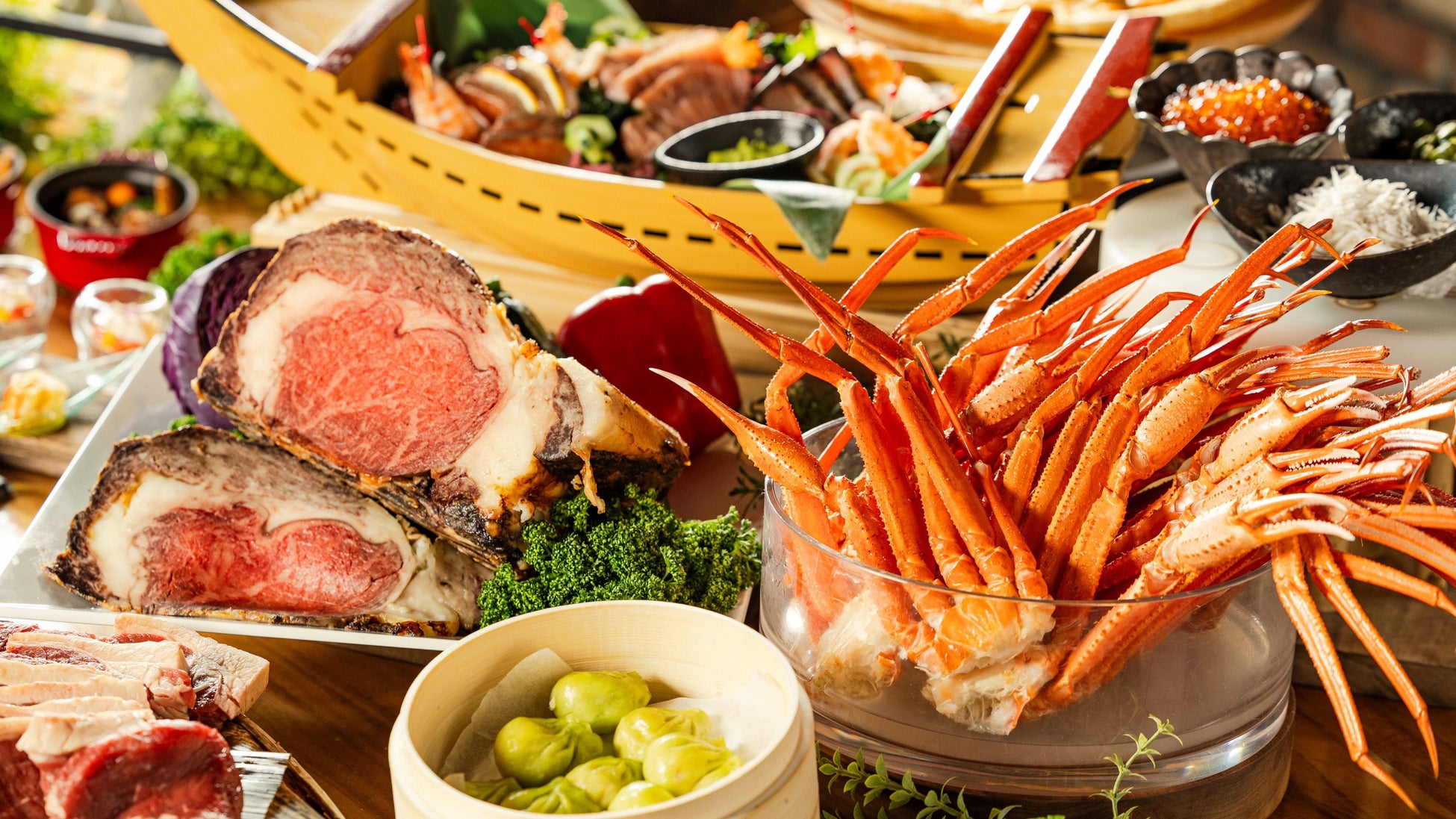 東京ベイ潮見プリンスホテル(東京都江東区潮見2-8-16、総支配人: 矢野 善大)では、2025年5月1日(木)から5月6日(火祝)の6日間限定で、「GW限定ディナーブッフェ」を開催いたします。本ブッフェでは、国産牛ならではのきめ細かく柔らかな肉質を堪能できるローストビーフのカッティングサービスをスペシャリテとしてご提供。シェフが目の前でカットする出来立てのローストビーフは、ジューシーな旨みが口いっぱいに広がる贅沢な一品です。さらに、海鮮を自由に盛り付ける「海の幸 のっけ丼」は、いくら、まぐろ、海老、サーモン、釜揚げシラス、ネギトロ、卵焼き、オクラひじきしそ風味、山芋とろろのご飯がすすむ9種類の具材をご用意。お好みの具材をたっぷり乗せて、自分だけの一杯をお楽しみいただけます。また、期間限定でお楽しみいただける蟹の食べ放題も登場。甘みたっぷりのボイル蟹を好きなだけ味わえる、この時期ならではの特別体験をお届けいたします。