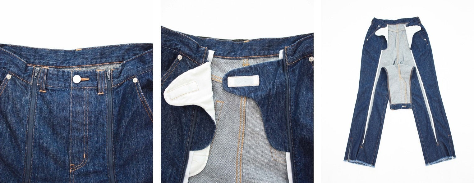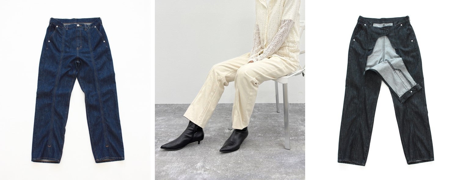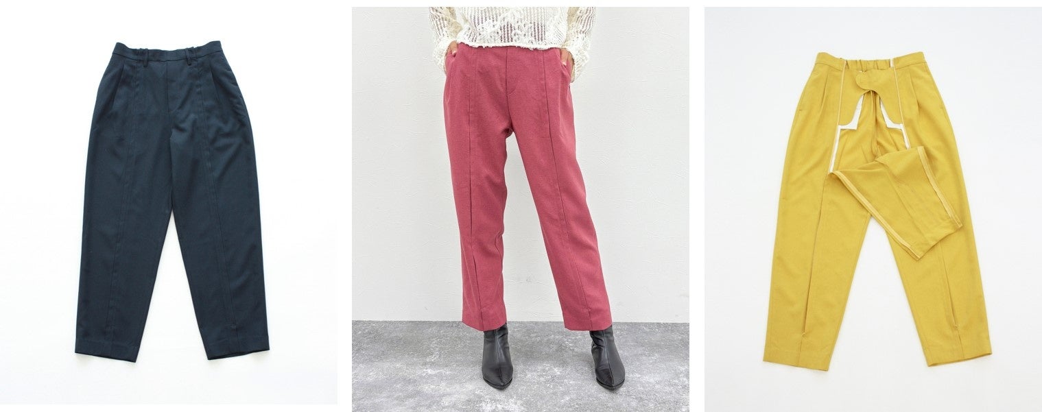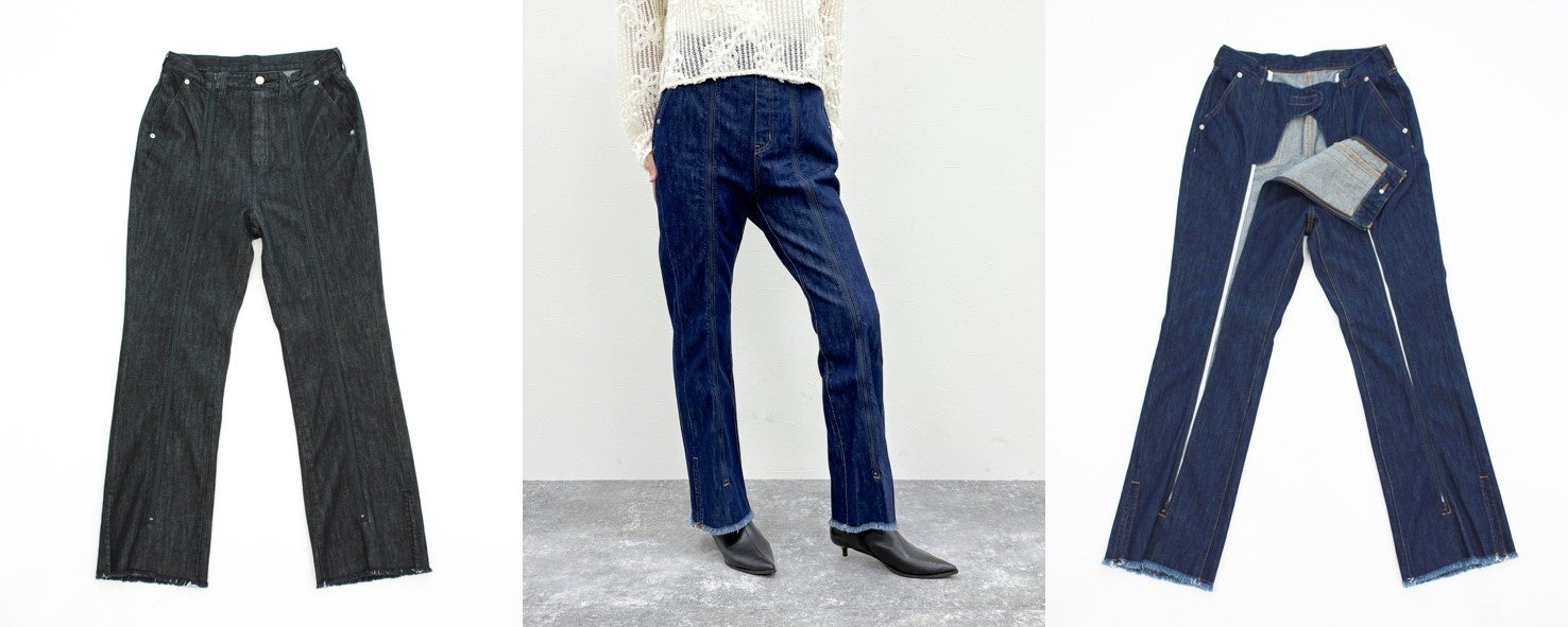 また、フロントファスナーはフェイクファスナーになっており、着脱は2本のファスナーになるため、面倒なボタン掛けをしなくても着脱ができ、ネイルも気にならず、すべての人に嬉しいパンツになっています。