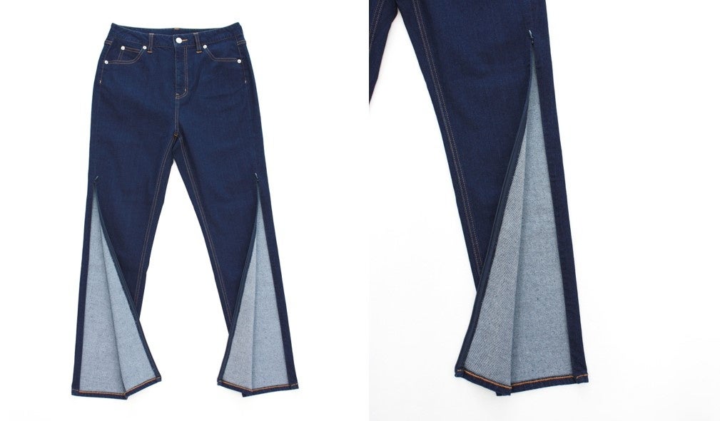 脇の縫い目部分に目立たないファスナーをつけました。閉めた状態では通常のパンツと変わりませんが、足に装具を付けていて裾口が狭く足入れが困難な方や、ふくらはぎしっかりさんには、脇が開く事で着脱がスムーズです。