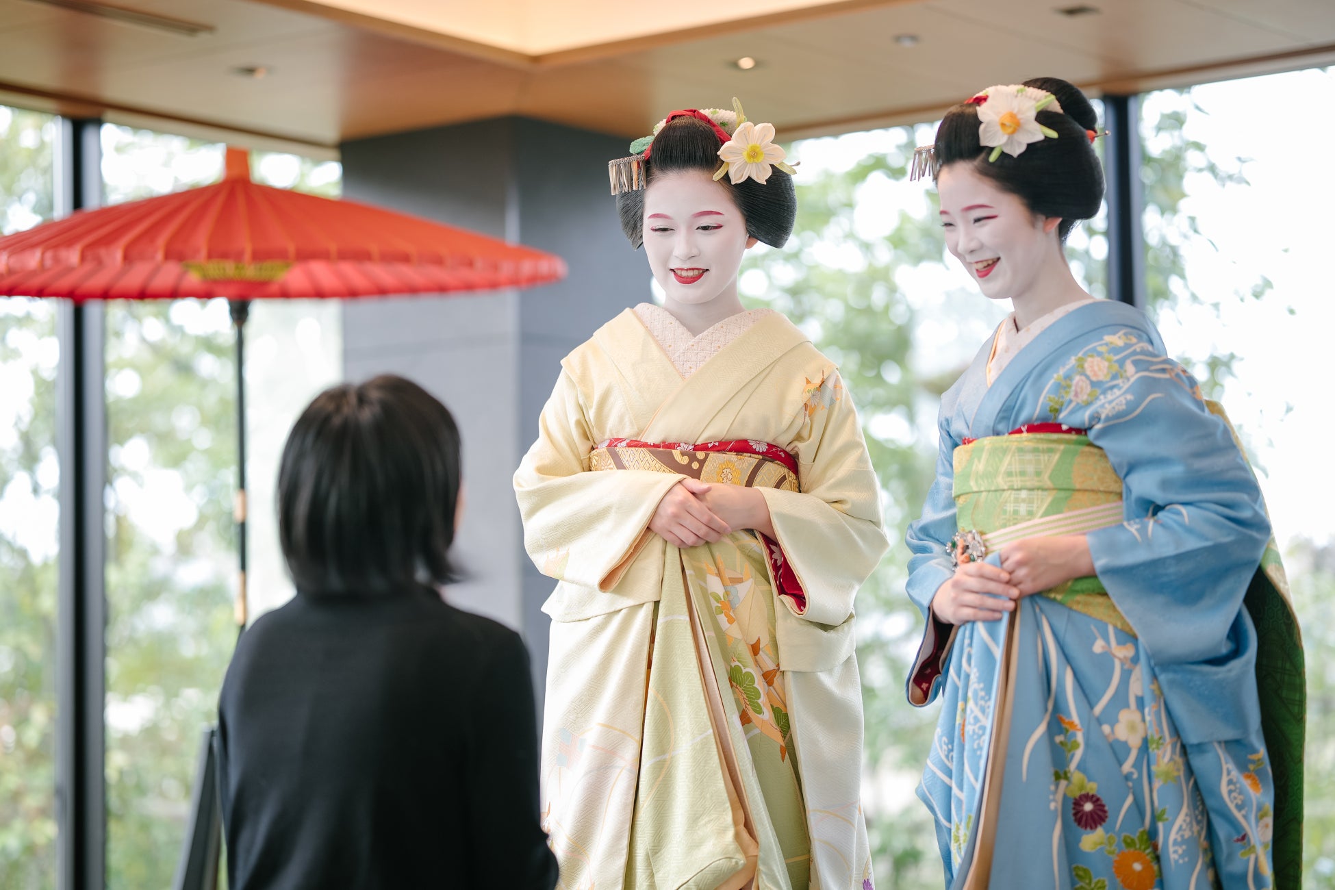 舞妓さんは京都を訪れる観光客の興味を引きながらも、出会える機会が多くない存在です。そのような舞妓さんを間近でご覧いただき、京都にある本物の伝統文化に触れていただきたいという思いから、当ホテルは五花街のひとつである宮川町から舞妓さんを招き、昨年の5月からイベントを開催してきました。