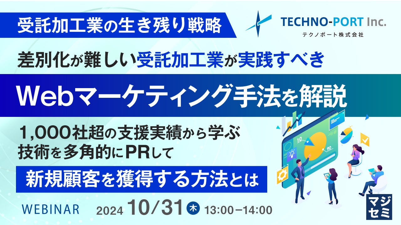 マジセミ株式会社は「【受託加工業の生き残り戦略】差別化が難しい受託加工業が実践すべきWebマーケティング手法を解説」というテーマのウェビナーを開催します。