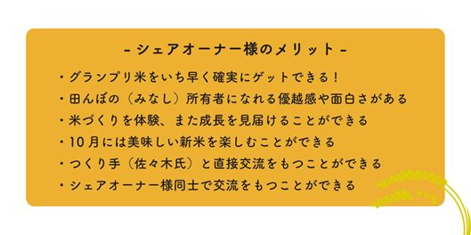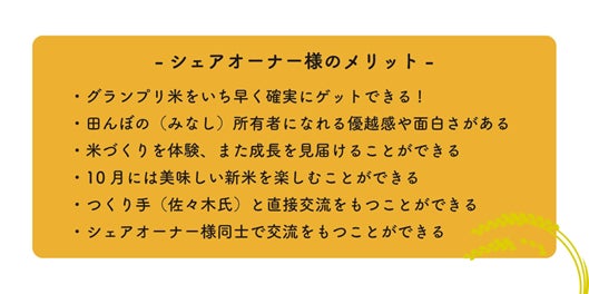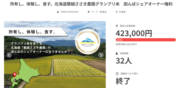 ▶プロジェクト名:所有し、体験し、食す。北海道蘭越ささき農園グランプリ米 田んぼシェアオーナー権利