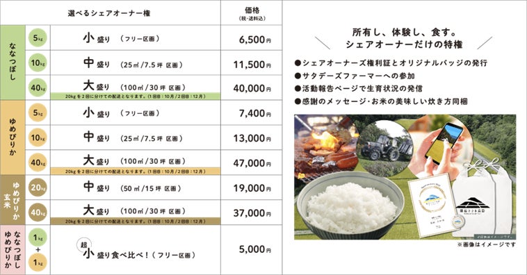 1) グランプリ米の田んぼを一区画「仮想」で所有することができ、収穫後にお米が届きます!