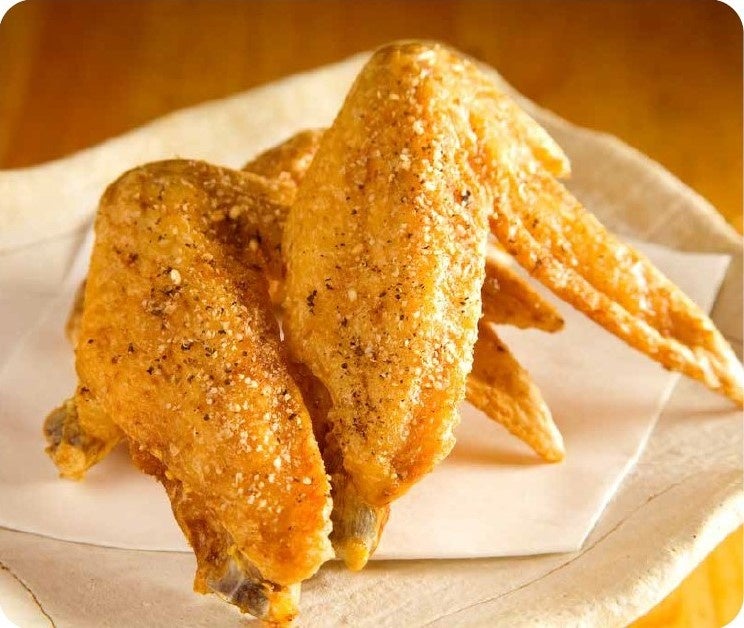 日本三大地鶏のひとつ“名古屋コーチン”を使用。オリジナルスパイスと醤油を配合した風味豊かな甘辛タレで、外はパリッ、中は濃厚&ジューシーな手羽先のからあげ。