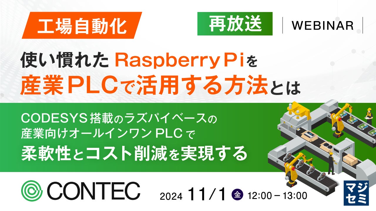 マジセミ株式会社は、大変好評をいただいた「【再放送】【工場自動化】使い慣れたRaspberryPiを産業PLCで活用する方法とは」というテーマのウェビナーを再放送します。
