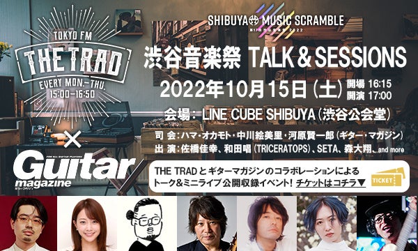 TOKYO FM『THE TRAD』×ギター・マガジン 渋谷音楽祭TALK&SESSIONS 10月15日(土)17:00~@ LINE CUBE SHIBUYA(渋谷公会堂)本日よりチケット発売開始