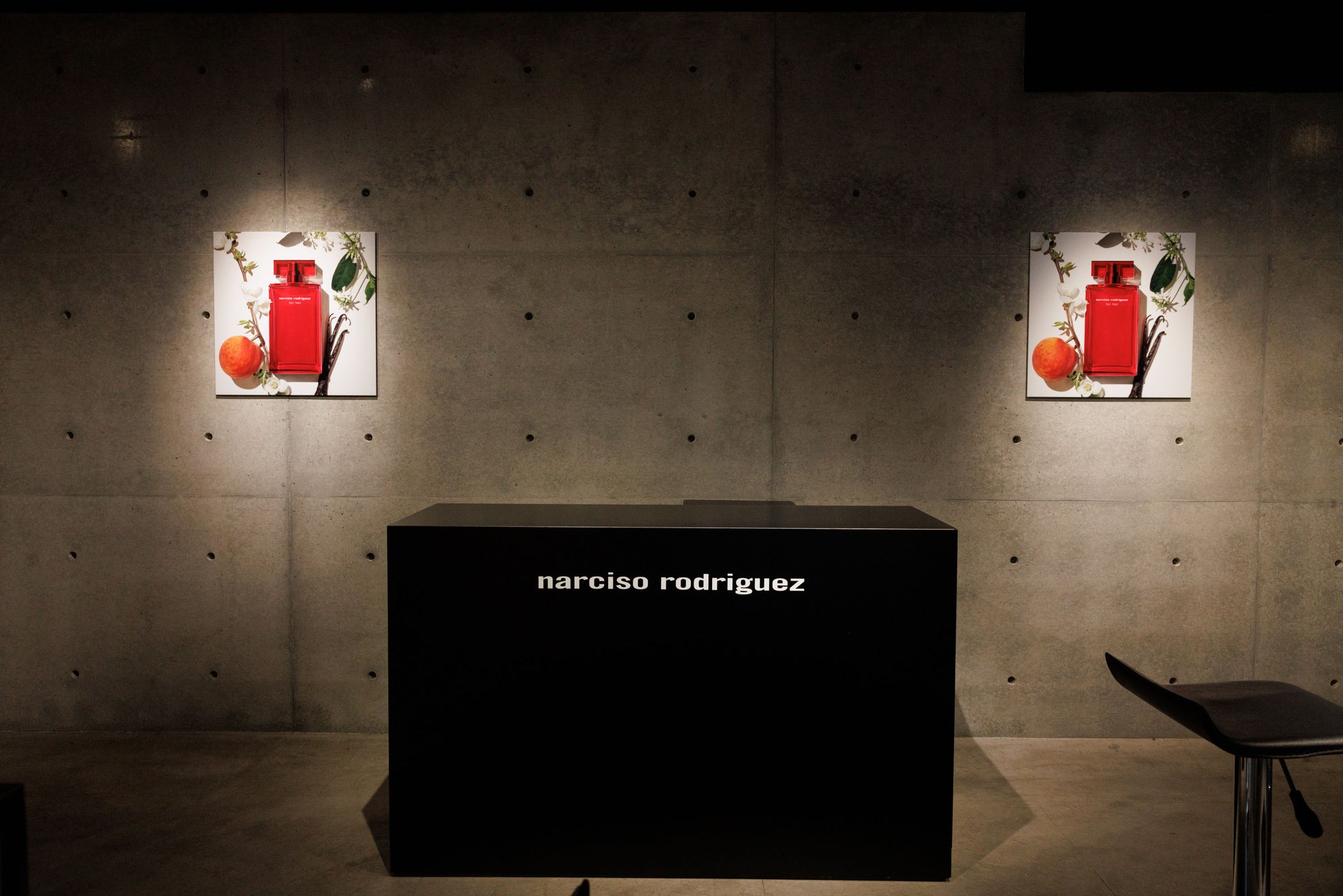 集まったプレスやフレグランス有識者、インフルエンサー等が、この日の為に設えられたブランドの世界観を凝縮したアートギャラリーのような空間で、調香師ソニア・コンスタンによる伝統的な香水技術と先駆的なAI技術を組み合わせた誕生秘話の動画や、著名な写真家マリオ・ソレンティによる、新ミューズ アンジェリーナ・ケンダルのキャンペーンムービー、そして「フォーハー」の特徴的な香りのレイヤリング「ART Of MUSC」の体験などをナルシソ・ロドリゲスのブランドコンセプトストーリーと共に存分に楽しむ機会となりました。