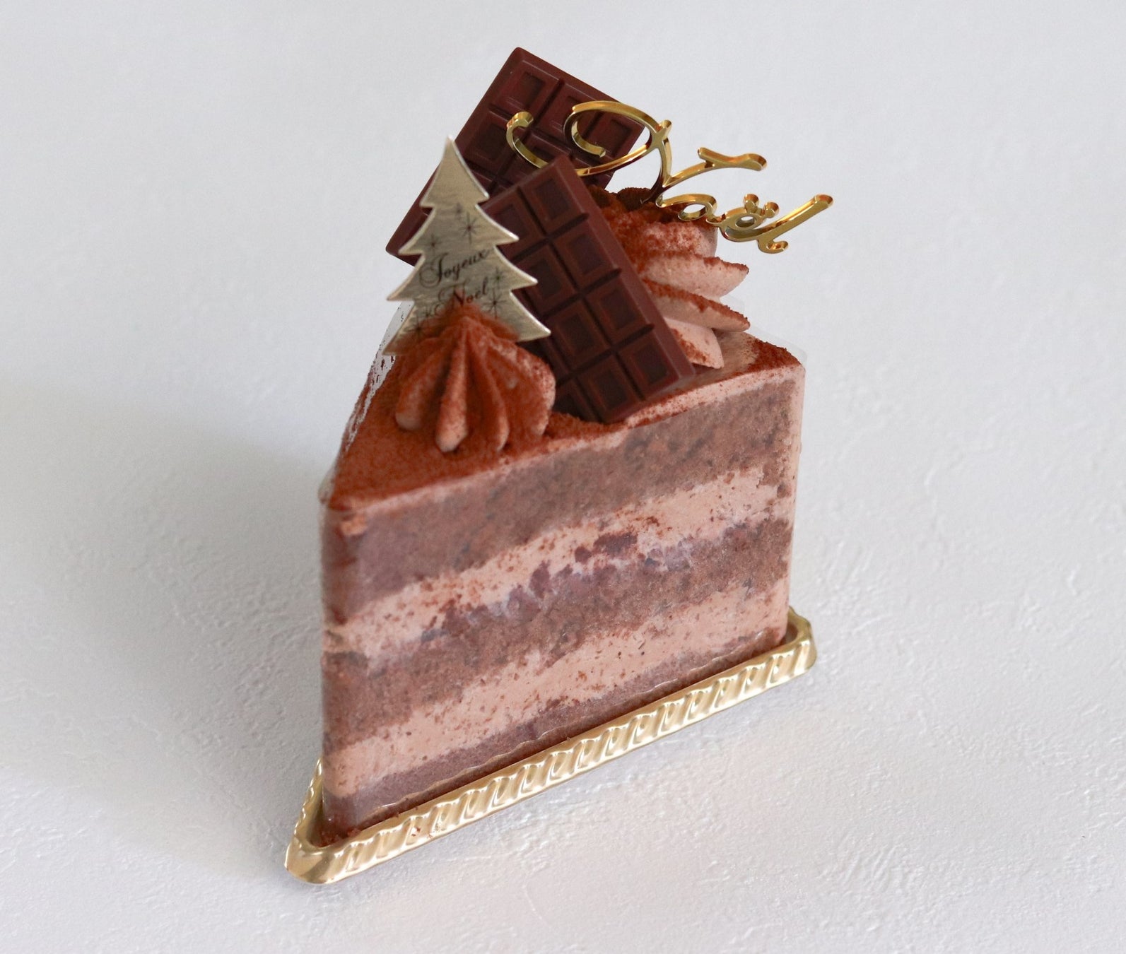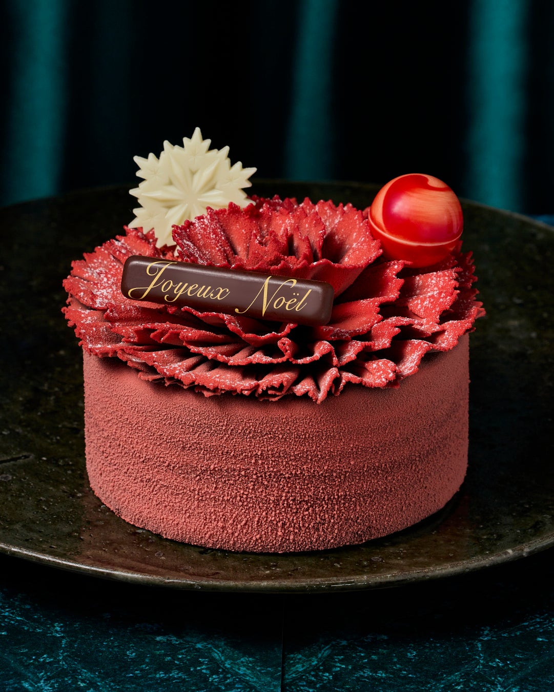 ルノートルのスペシャリテ、フイユ・ドトンヌのクリスマス限定仕様。ベリー系の紅茶風味のチョコレートムースをメレンゲとフランボワーズのジュレが引き立てます。チョコレート細工で華やかな装いに仕上げました。