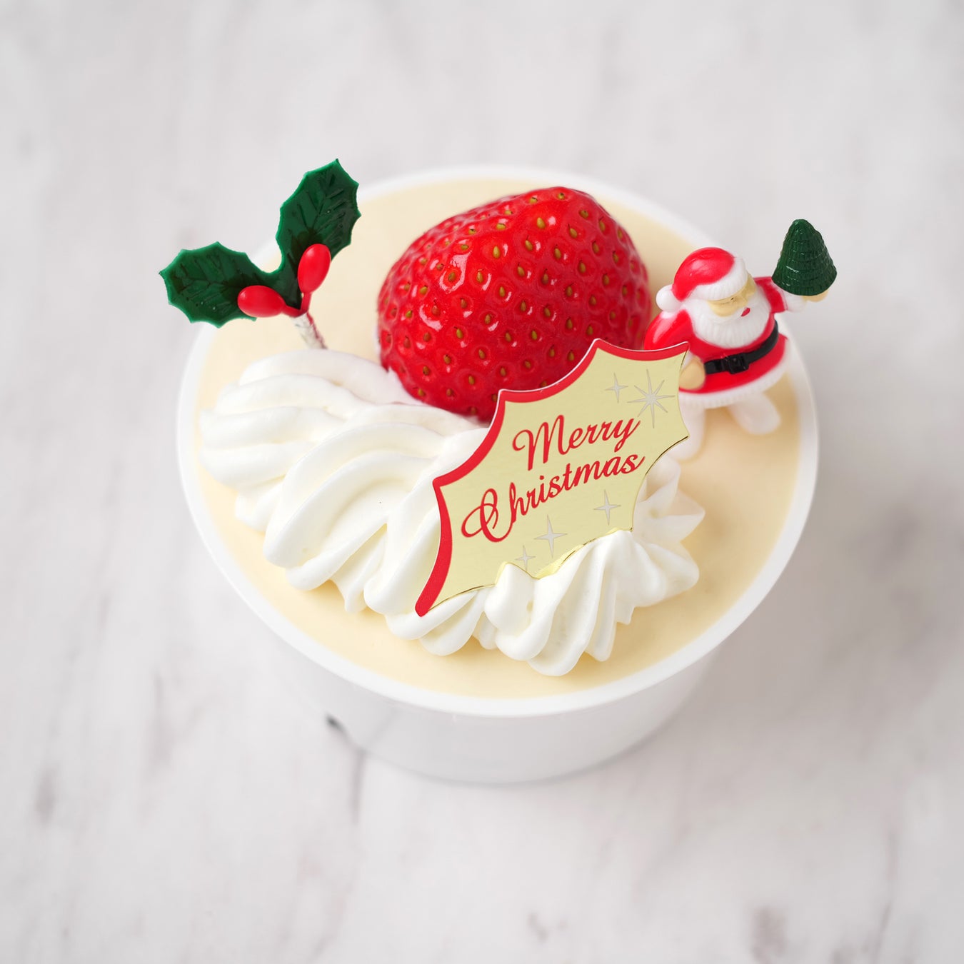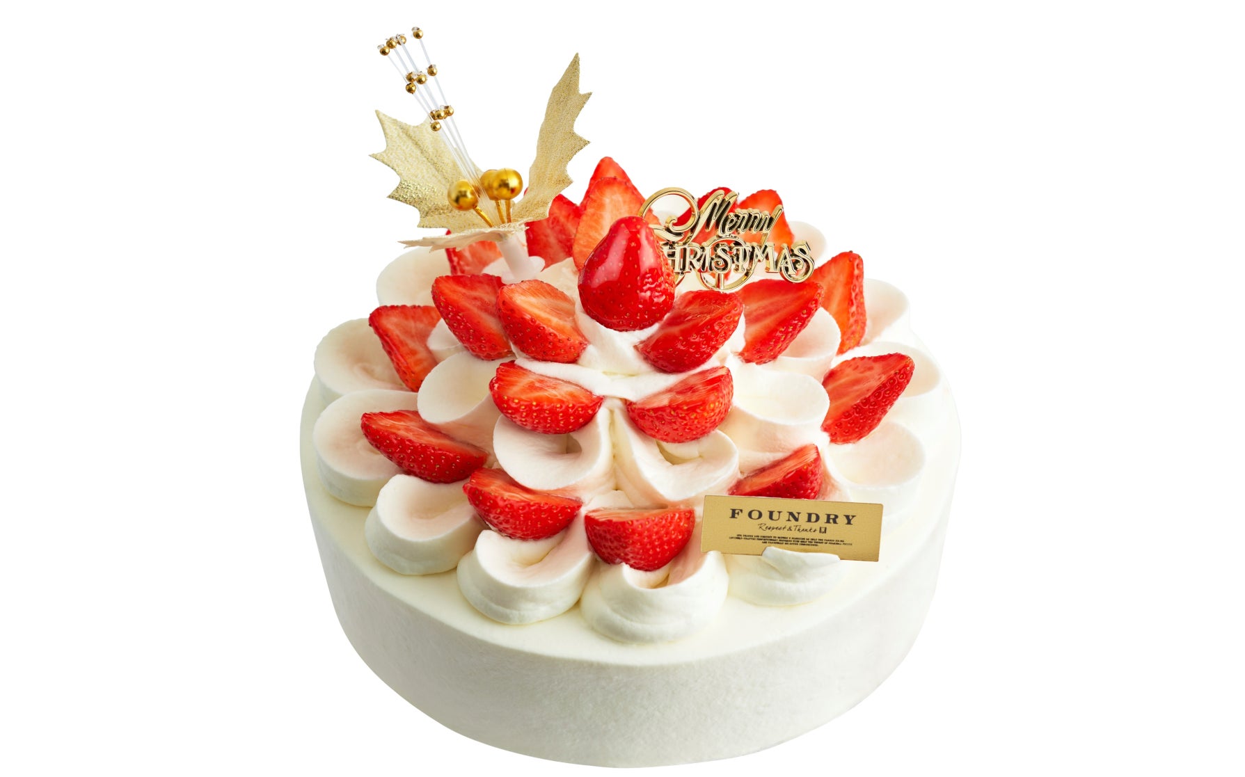 苺を天面に6粒、サンドにはハーフカットを隙間なく敷き詰めました。軽い口当たりの高品質なホイップクリームとスポンジ生地が苺の美味しさをより一層引き立てます。果物専門店ならではの苺が主役のクリスマスケーキです。