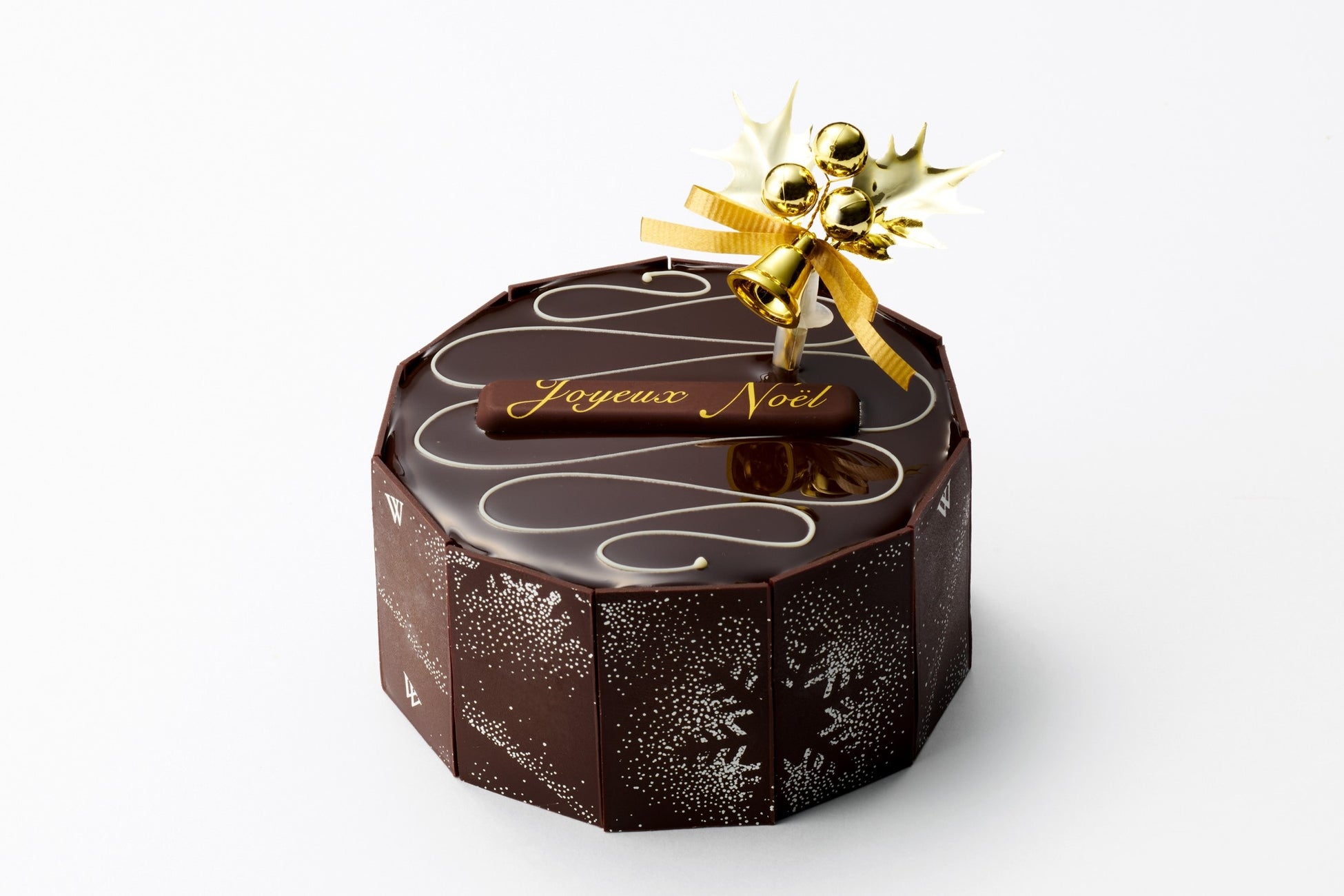 カカオとアーモンドの香りが高いビスキュイと濃厚なヴェネズエラ産カカオのムースの組み合わせ。ジャン=ポール・エヴァンを代表するガトーをクリスマスの特別なデコールで仕上げました。