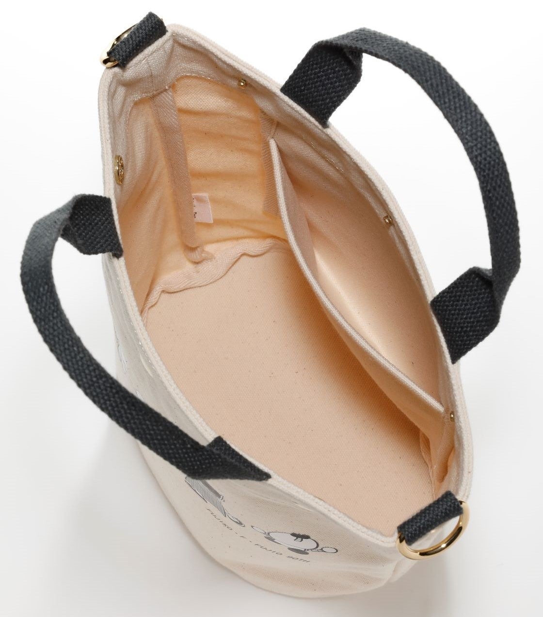 大人も持てる高級感を出すため、素材にはハリがある厚手のコットン生地を採用。開口部は3つのホックでしっかりと閉じることができます。内部はオープンポケットが付くシンプルな構造で、500㎖のペットボトルが縦に収まるサイズです。