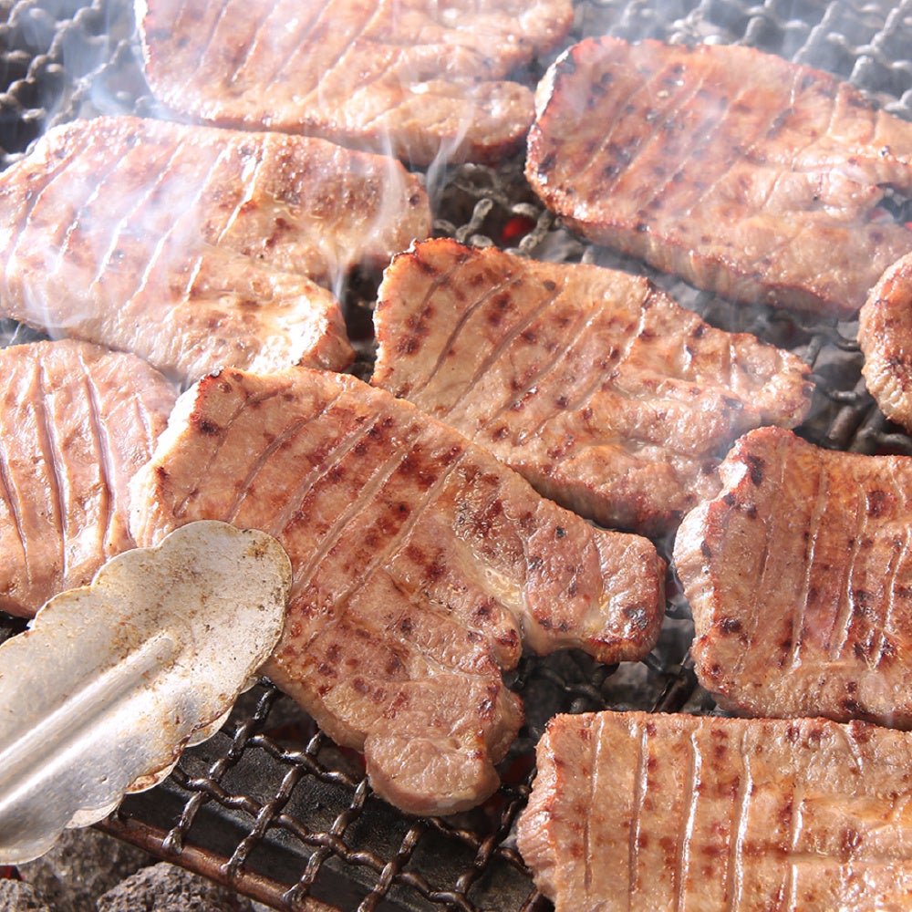 塩麹熟成と低温熟成の「二段階熟成」で仕上げる陣中の牛タン。ジューシーな霜降りタン元部位から赤身のタン中先部位まで、牛タンの3つの部位を一度に楽しめます。