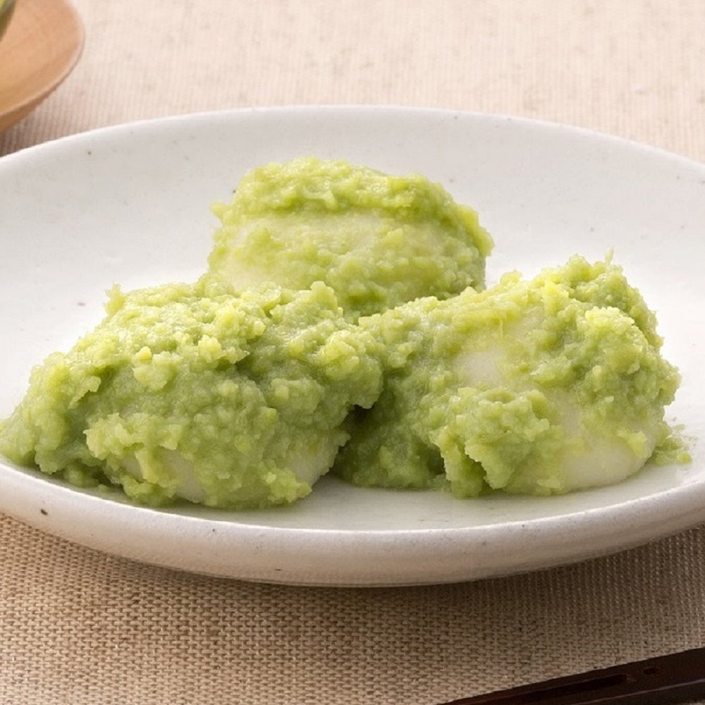 宮城県産のもち米「みやこがね」を100%使ったずんだ餅。着色料を一切使用せず、素材の持つ旨味、色合いを存分に活かした逸品です。