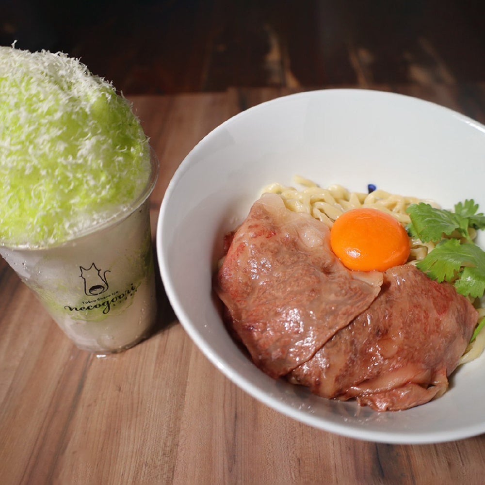 住所非公開、完全予約制の東京の人気店。和牛と魚介の旨み広がる醤油らあ麺の重ね醤油ダレと地鶏、豚骨のスープを合わせた黒毛和牛のすき焼き風卵かけまぜめんです。