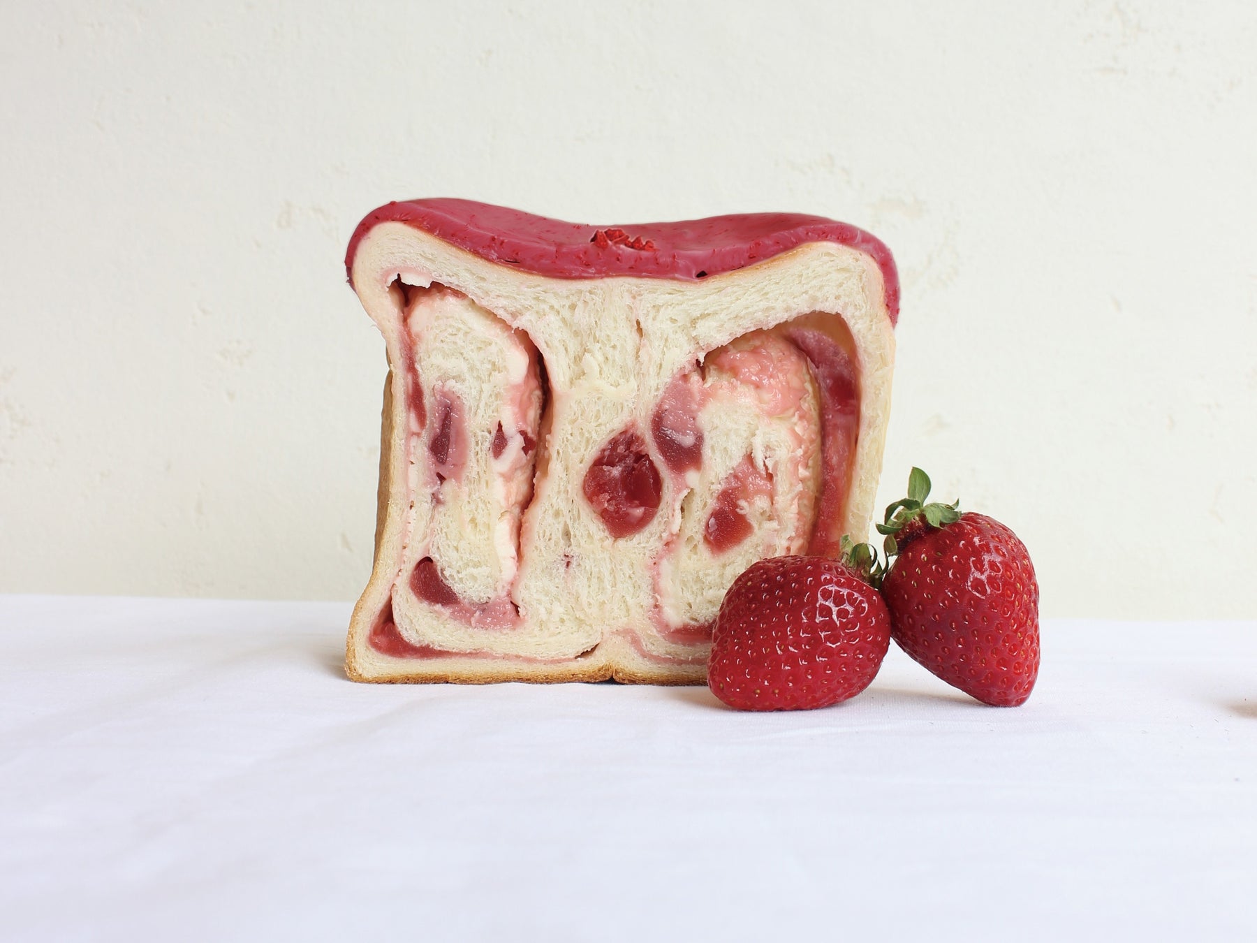 可愛くて、美味しくて、ずっしり。生地はてまひまをかけて3日間寝かせ、しっとりもっちり。 そんな生地で作るプレミアムストロベリーは、ブランドいちごあまおうクリーム、レアチーズ、ストロベリージュレが宝石のように2つの渦巻きの中でキラキラと輝きます。更にフランボワーズチョコレートをコーティングした、まるでケーキのような食パンをお楽しみください。