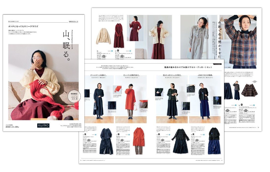 冬景色に映えるカラーや刺しゅうを施した「チェックトップス」や「ワンピース」など、12点の冬の新作アイテムがフェリシモ「Sunny clouds[サニークラウズ]」から登場