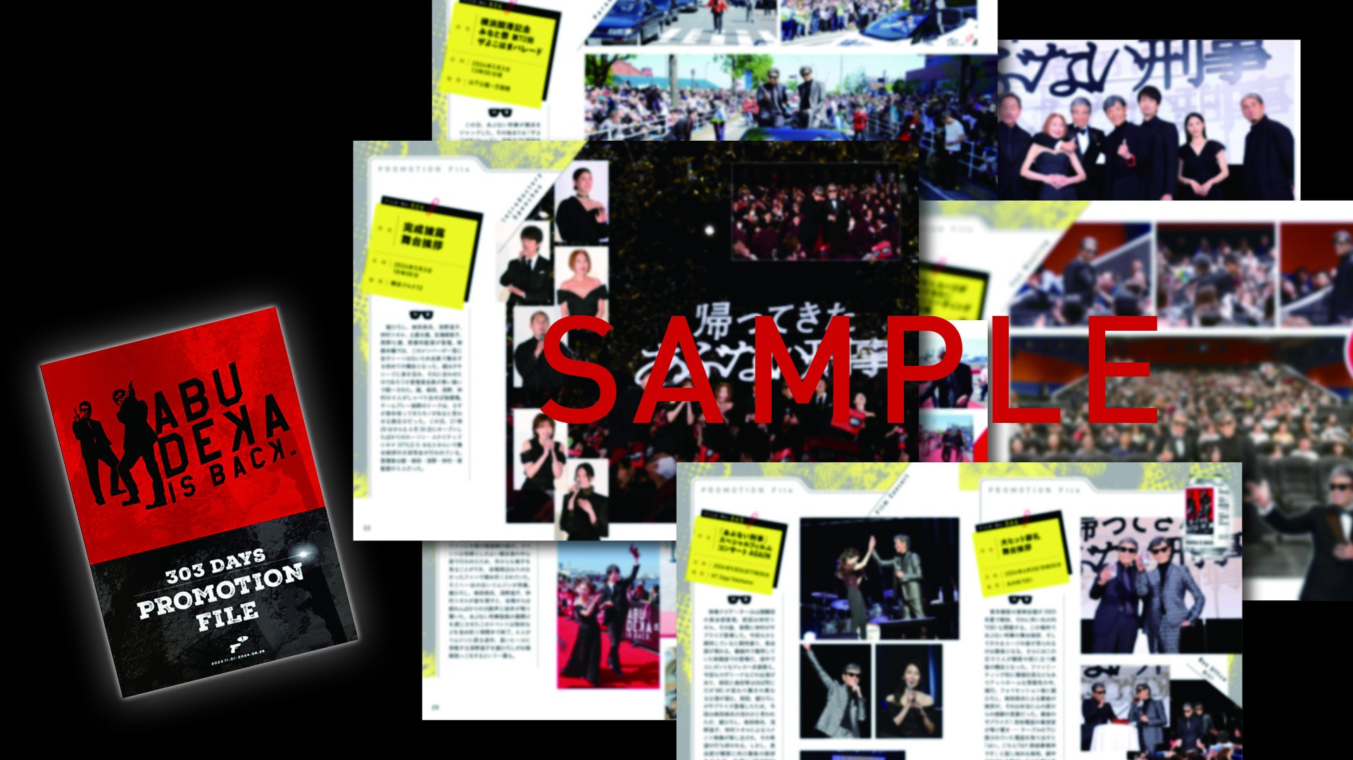 2023年11月1日の製作発表会見から、2024年5月24日公開後3か月以降までの、異例ともいえる長期に亘り行われた一連のプロモーションをはじめ、コラボした多数のグッズ紹介も含めて、映画が⼤ヒットへと⾄った軌跡を順に追った、全60Pに及ぶメモリアル集『303 DAYS PROMOTION FILE』を封⼊。