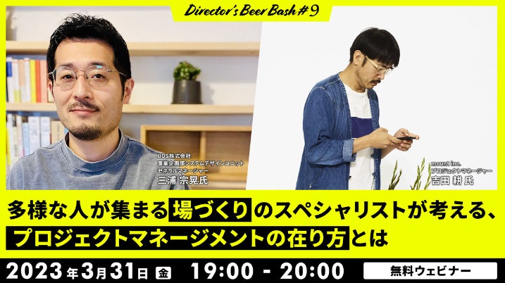 「Director's Beer Bash」は、現役のWebディレクターやプロジェクトマネージャー(PM)をお迎えし、Web業界の未来とキャリアについて、ビールを片手にゆるくもアツく語っていただくオンラインセミナーです。2021年2月からスタートしたこちらのイベントは今回で9回目。今回の「Director’s Beer Bash」では、Web業界の枠を超え、さまざまな業界のプロジェクトでご活躍されている方をゲストにお迎えし、その多様な解釈やスタイルを深掘りすることでプロジェクトマネジメントの奥深さを紐解いてまいります。