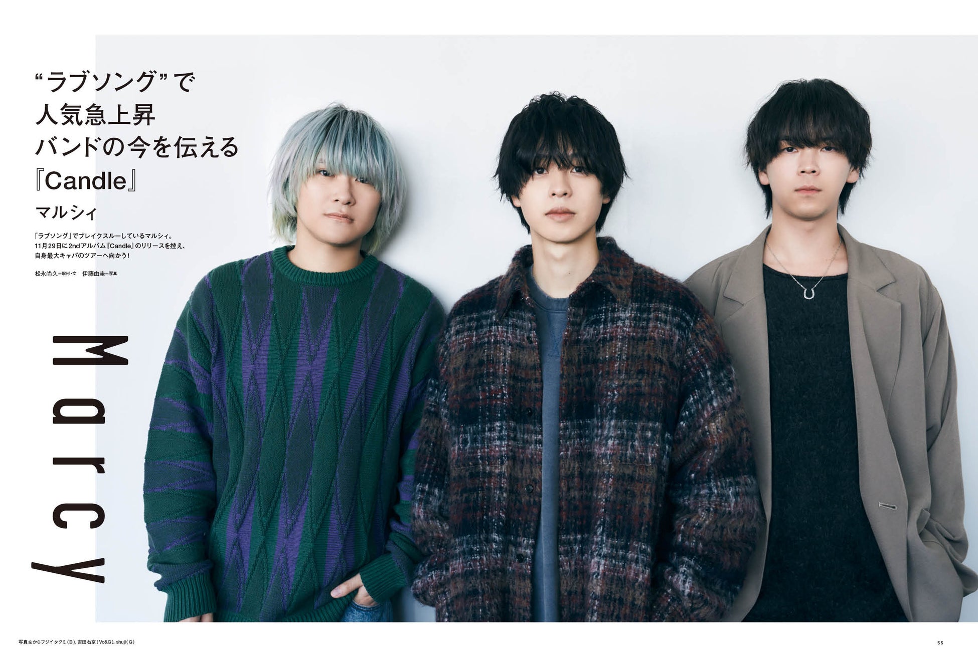 9月27日に配信リリースした「ラブソング」のヒットで人気急上昇中の3人組・マルシィには、同曲をはじめ、CMなどタイアップ曲も収録する2ndアルバム『Candle』(11月29日発売)、また、自身最大キャパとなるツアーへの意気込みまで語ってもらいました。