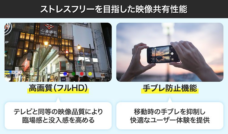 4Gに加え5G環境下でも高画質・高音質で低遅延の接続が可能となり、臨場感のある“現地体験”を提供します。