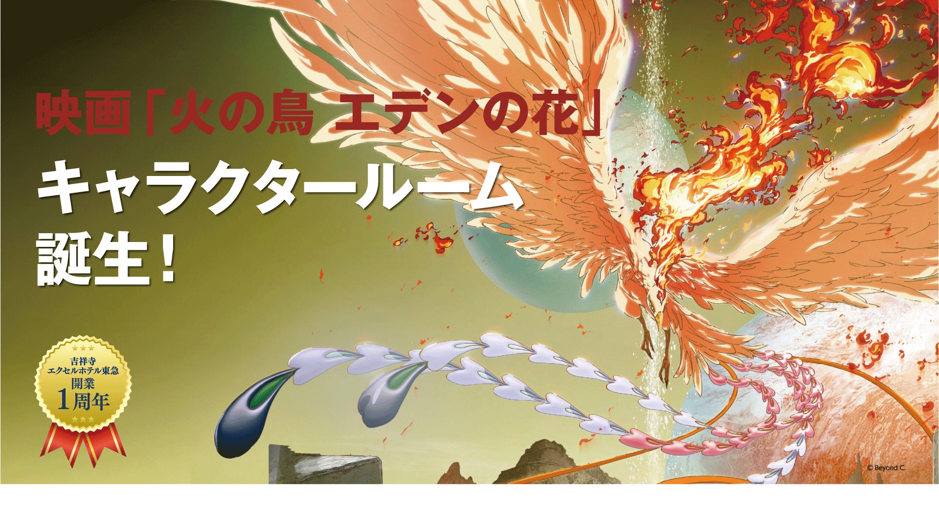 2023年10月28日(土)にホテル開業1周年を迎える吉祥寺エクセルホテル東急(東京都武蔵野市 総支配人 田中 由美子)では、ホテル開業1周年と映画「火の鳥 エデンの花」の2023年11月3日(金・祝)全国公開を記念し、2023年10月13日(金)~2023年12月26日(火)の期間、「火の鳥 エデンの花」キャラクタールームを販売いたします。